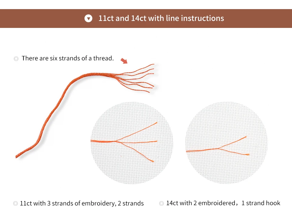 2. If you have purchased 14CT cross stitch, please use 2 strands for embroidery(One embroidery thread can be divided into 6 strands).
