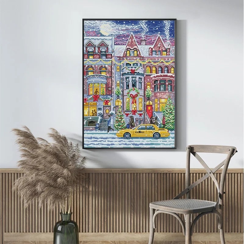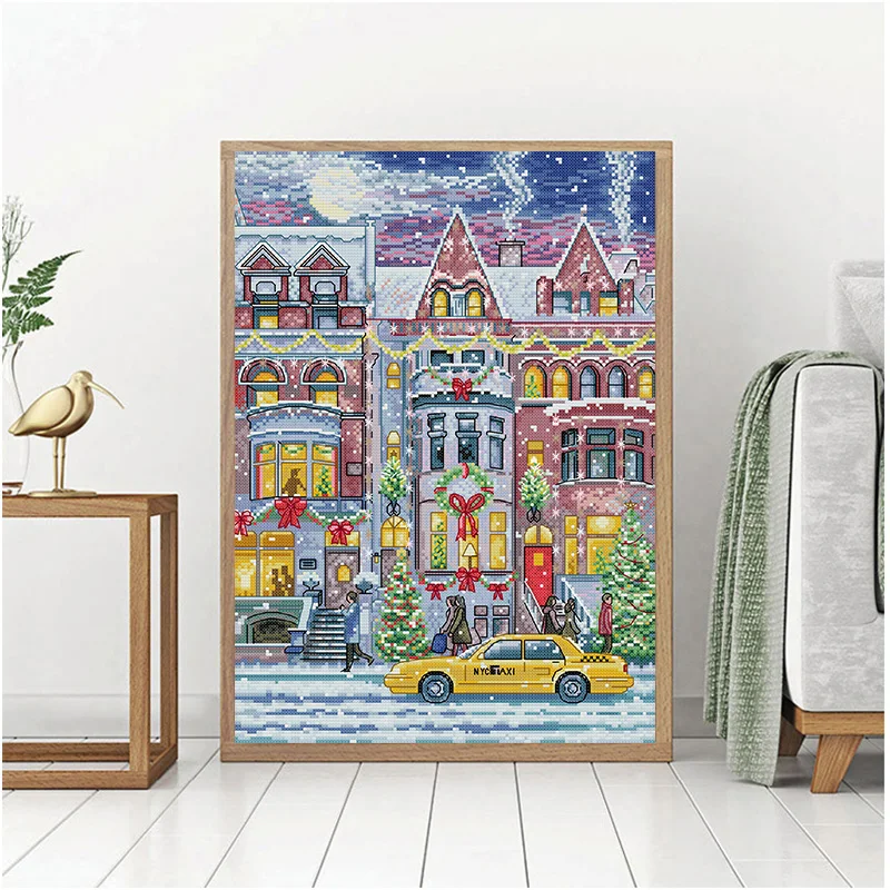 Small Town in Winter Pattern DIY Cross Stitch Set Needlework Handmade Crafts Sewing Art Craft Kits Home Decoration Gifts