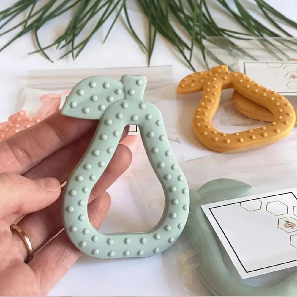 Attractive Pear Design: natural fruit pear shape help soothe gum during teether by soft and durable silicone, A " Must Have" Gife for little infant teething toys.