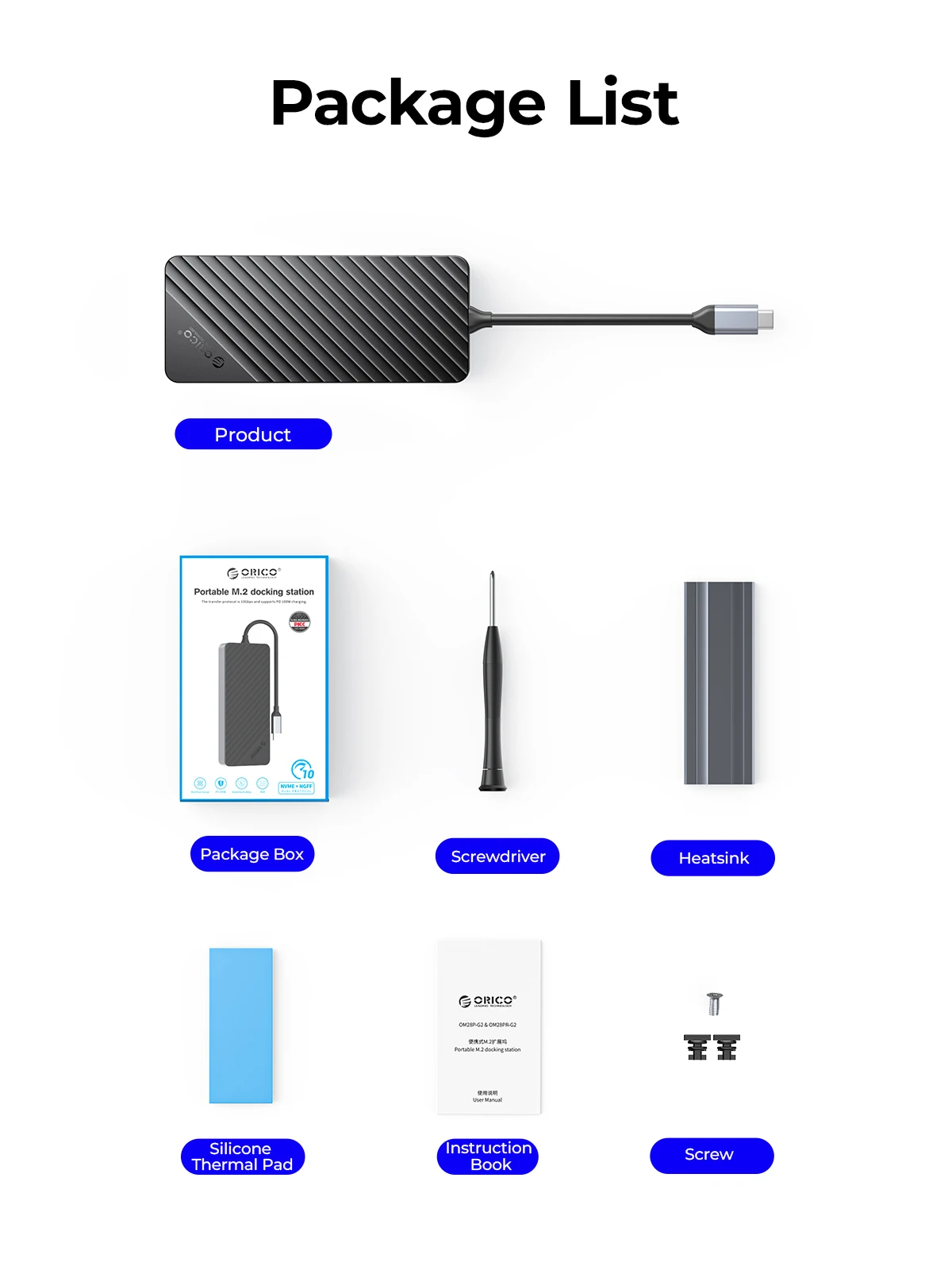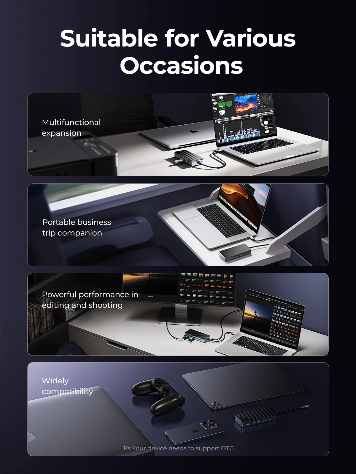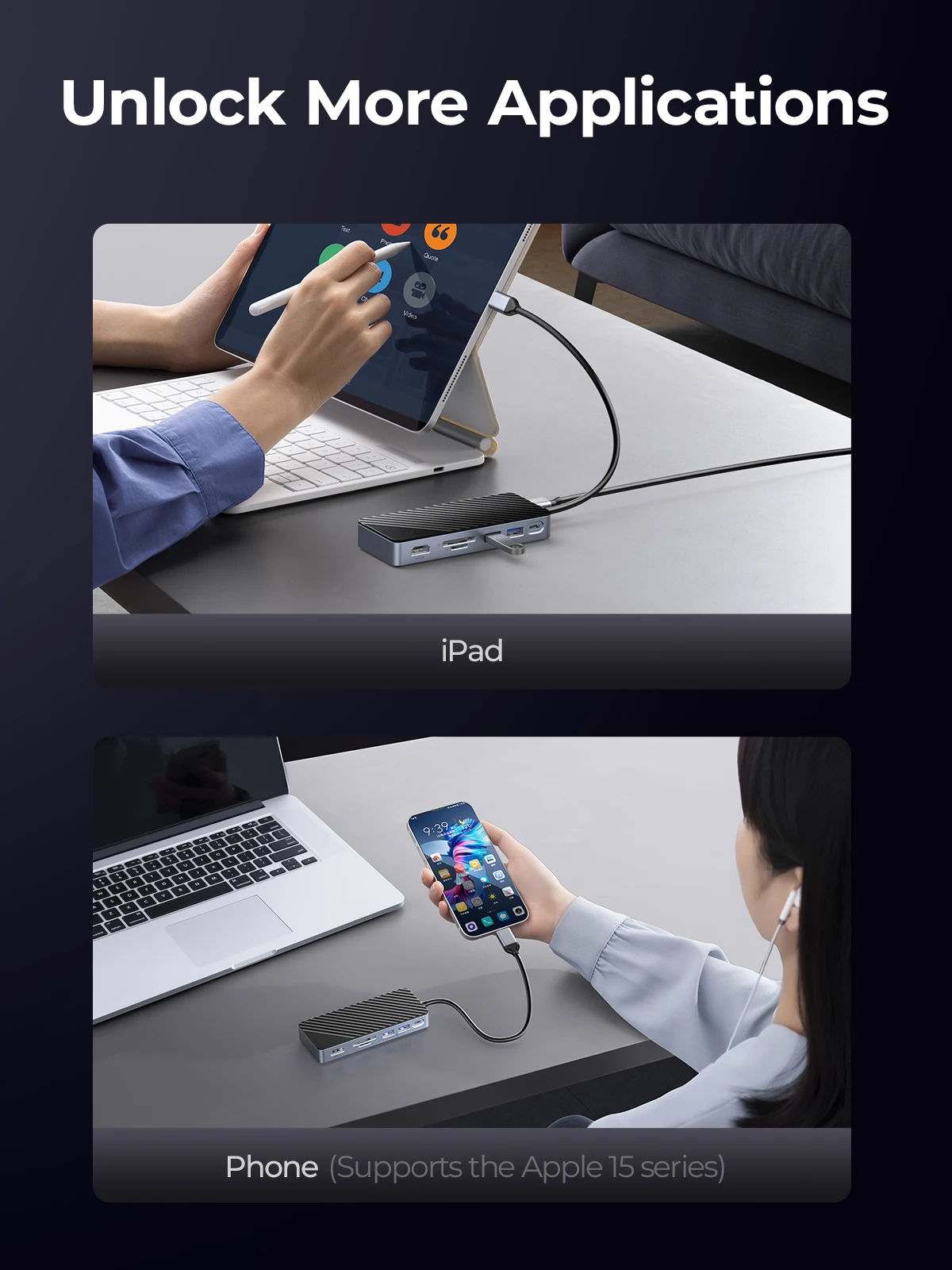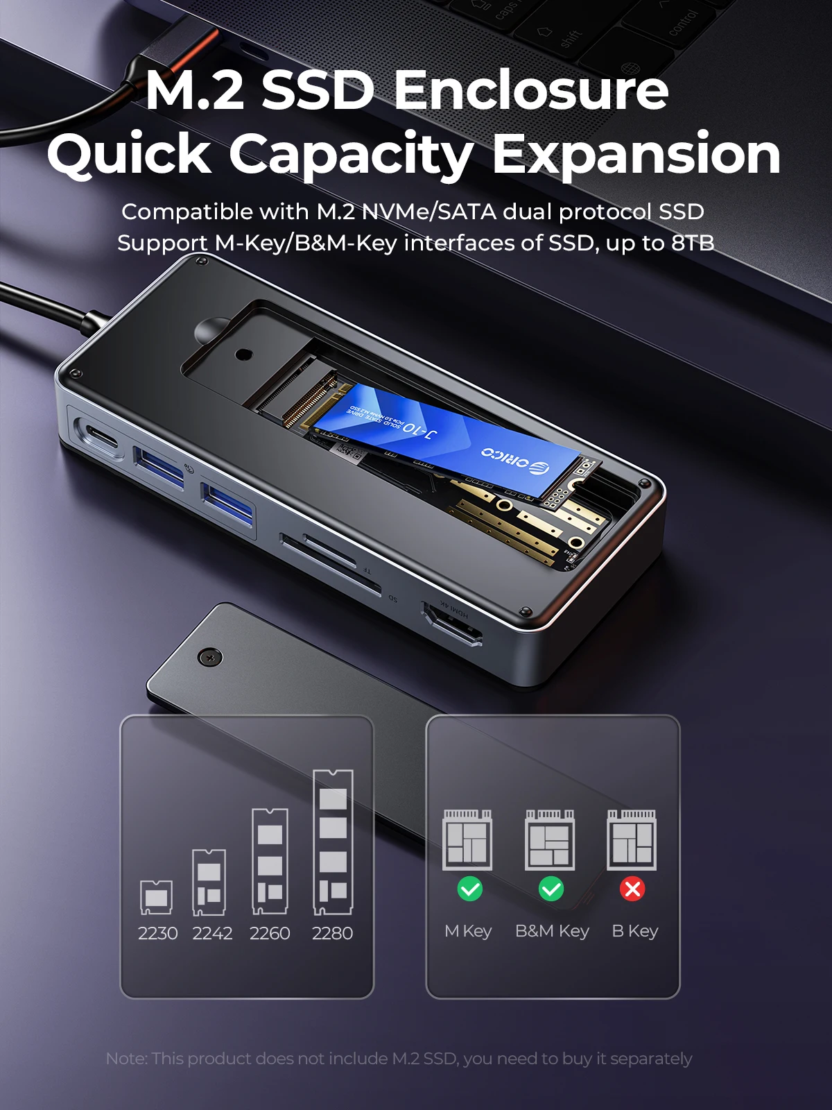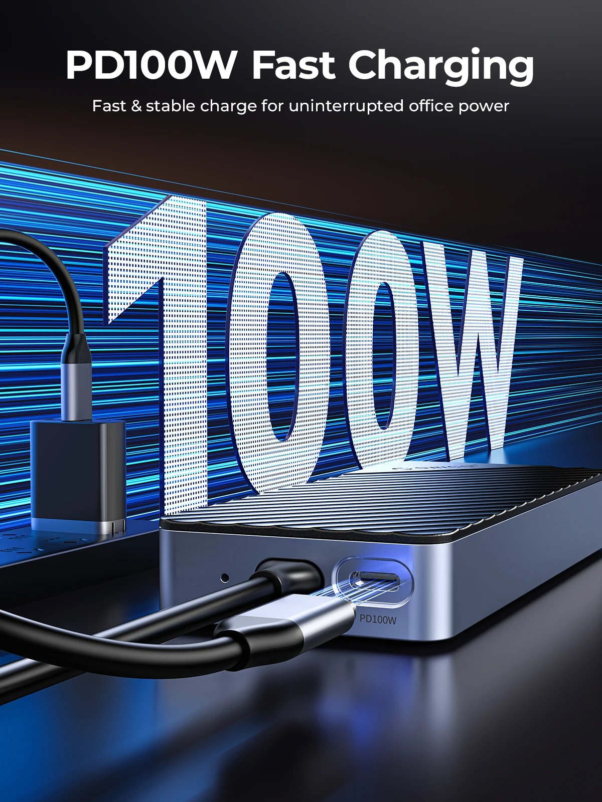 • Powerful Interface :The USB Type-C interface provides 100W PD RJ45 SDTF 10Gbps M.2 NVME SSD 8TB high-speed data transfer capability.