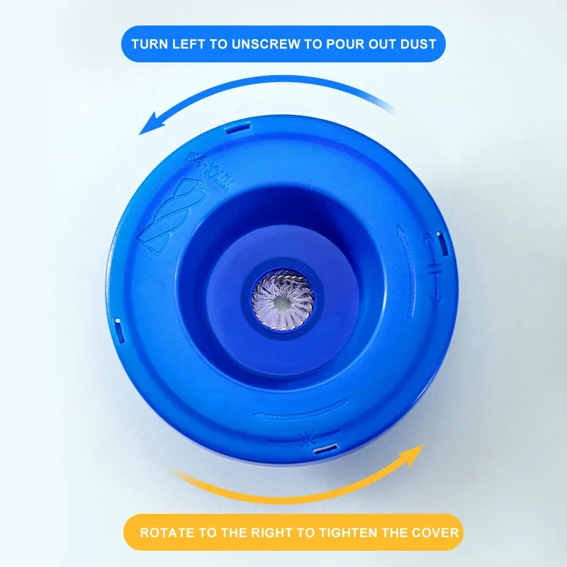 Dust proof dust collection, rotate and unscrew to pour out dust