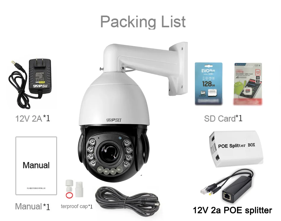 • This PTZ Camera  is two in one (WIFI+POE),Wifi Signal Support 2.4Ghz and 5.0Ghz,POE is use 48V to 12V 2A POE Splitter with waterproof box.