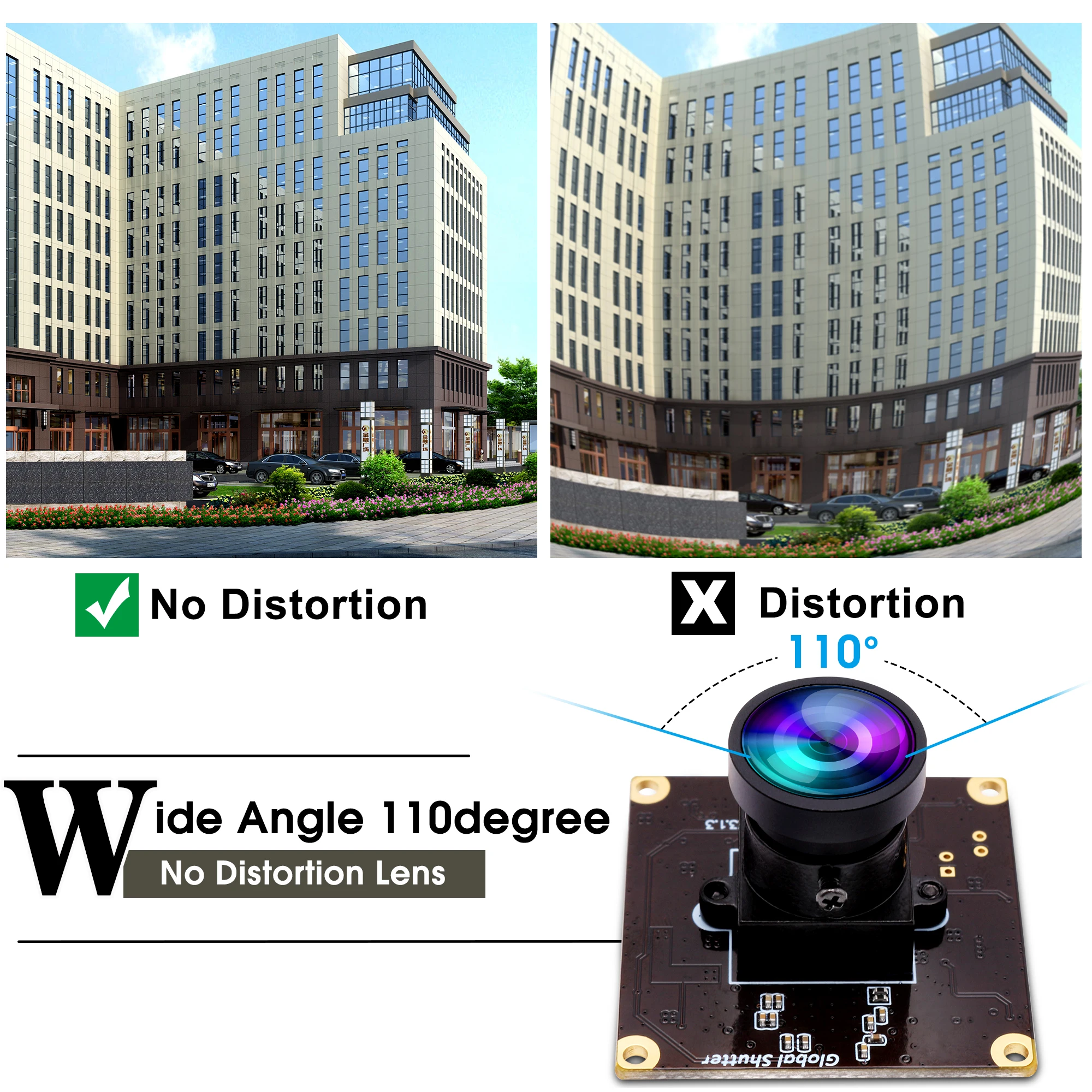 Lens: No distortion lens,