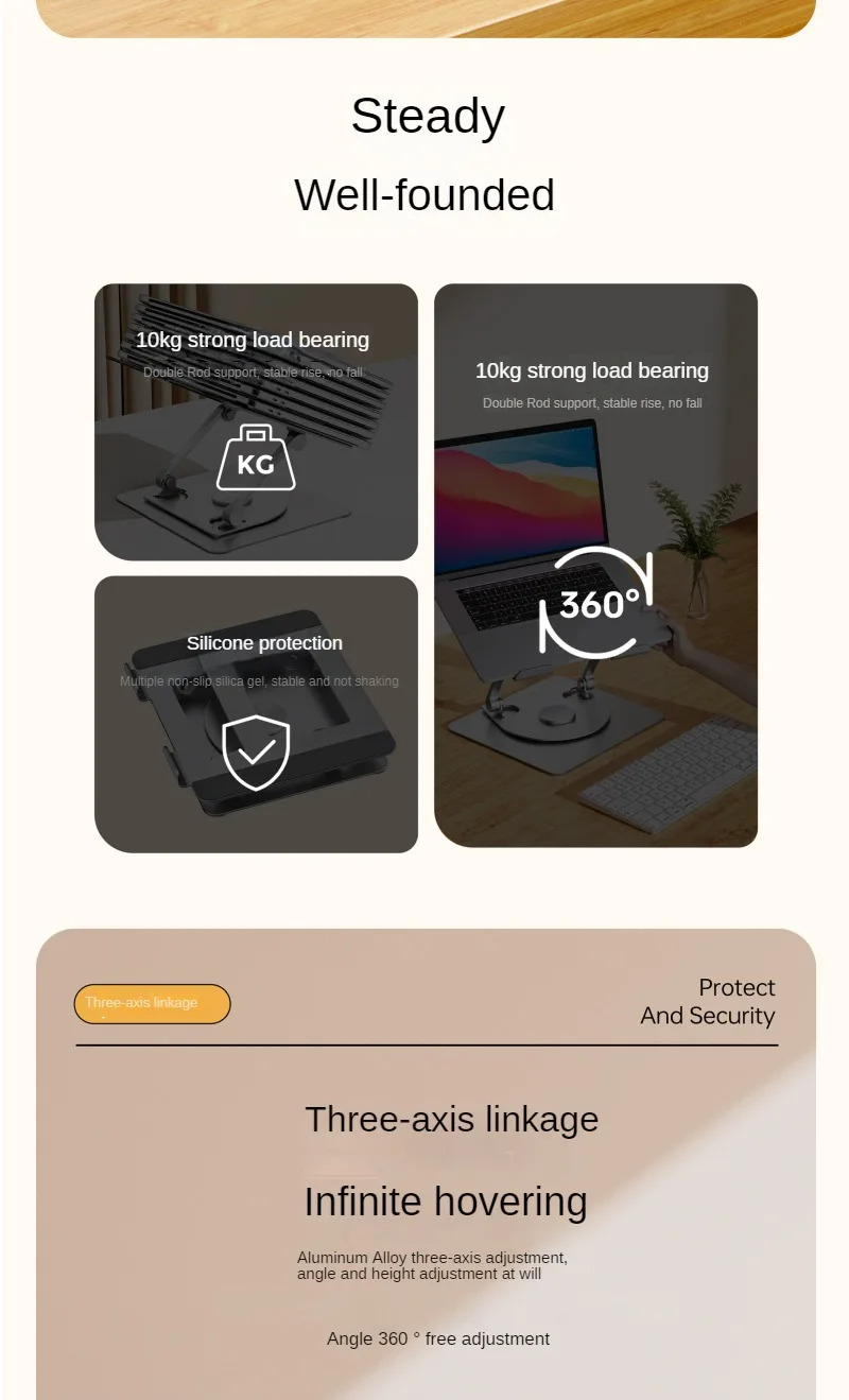 Laptop Stand 360° Rotating Base Foldable Computer Desk Riser Aluminum Alloy Compatible MacBook Pro/Air Notebook 10- 17.5Inches