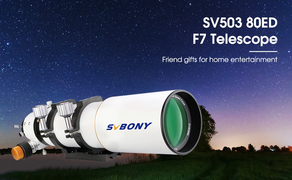 Extra-low Dispersion glass; SV503 Telescope OTA is designed with ED glass; will give you the crystal clear image;SV503 80ED telescope produces an especially colour true and high contrast image; just right for more discerning observers