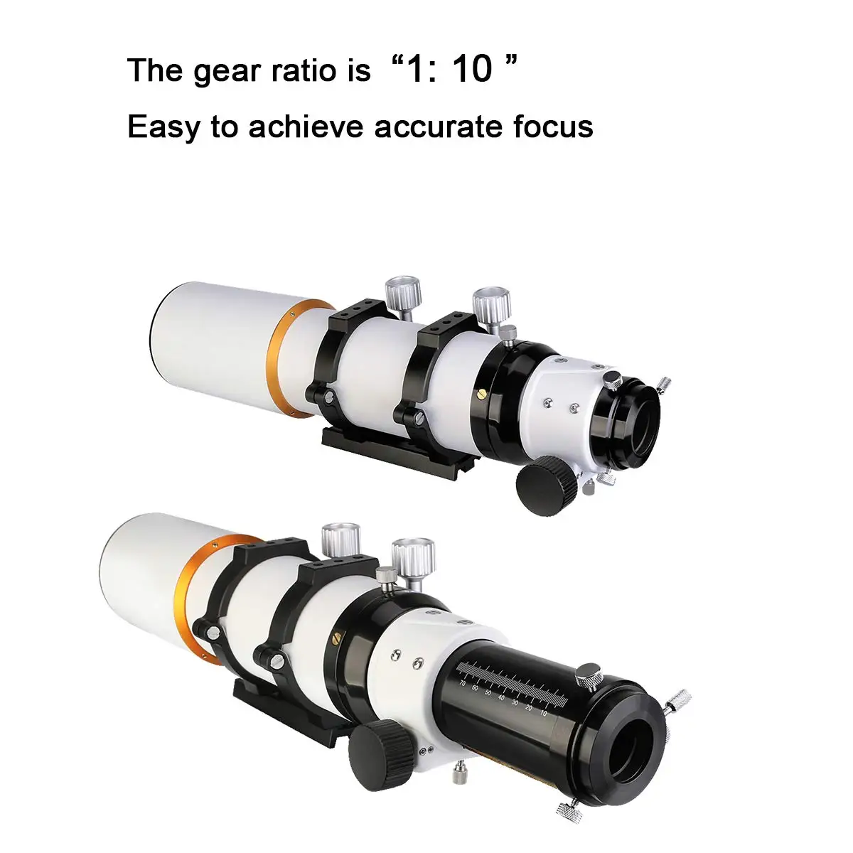 Dual-speed rack and pinion focuser;The gear ratio of the dual speed 2-inch toothed focuser is 1: 10; which makes it easy to achieve accurate focus