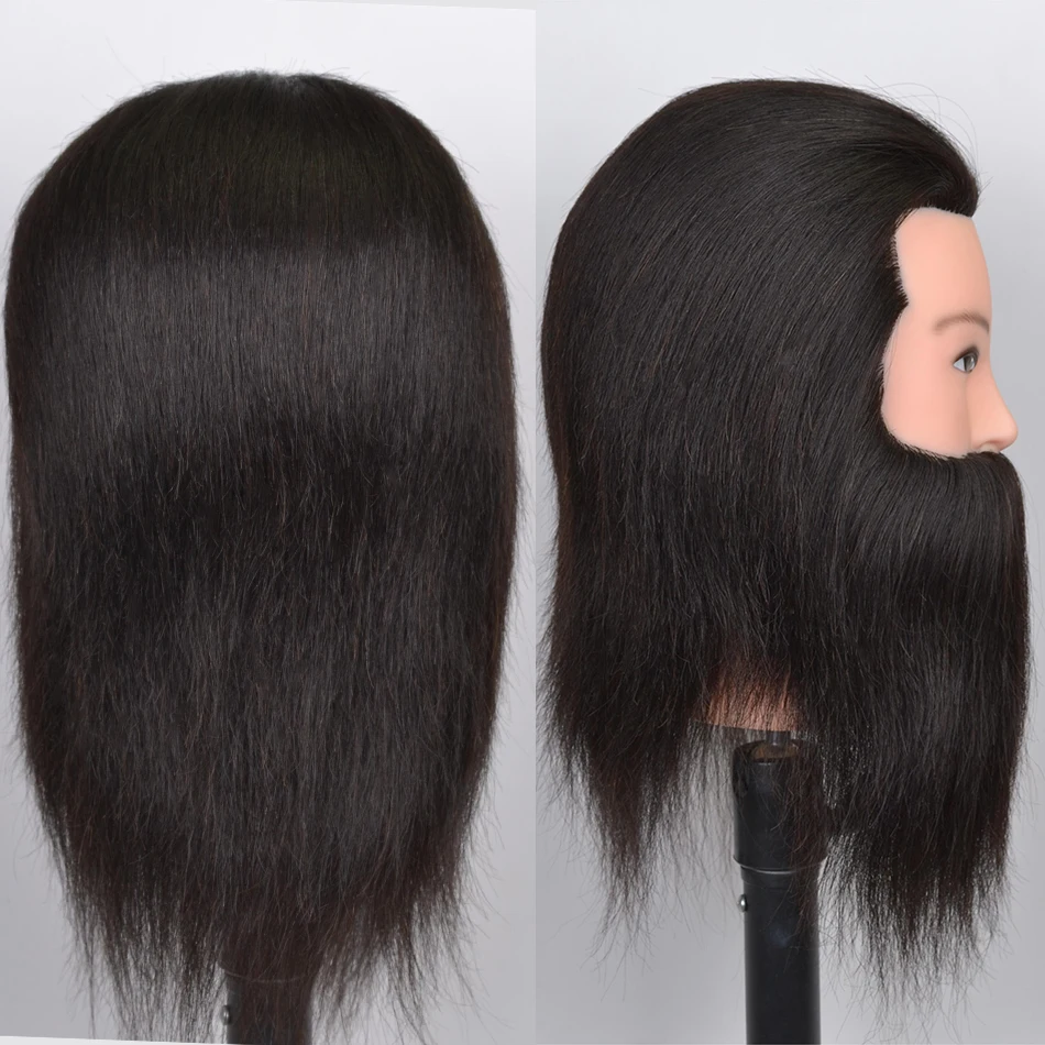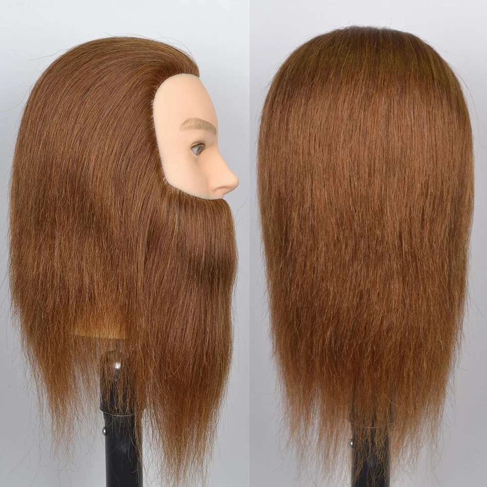 100% Human Hair Male Mannequin Head With Hair Beard Practice Manikin Hairdresser Cosmetology Training Doll Head For Hair Styling