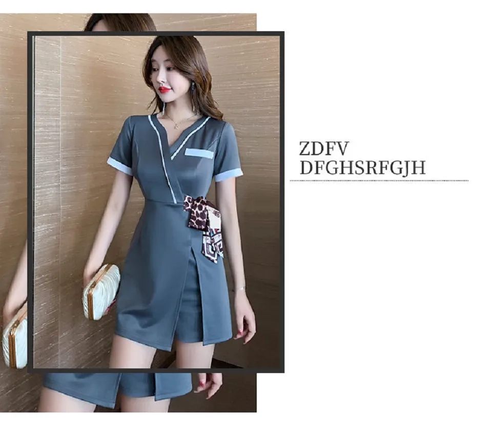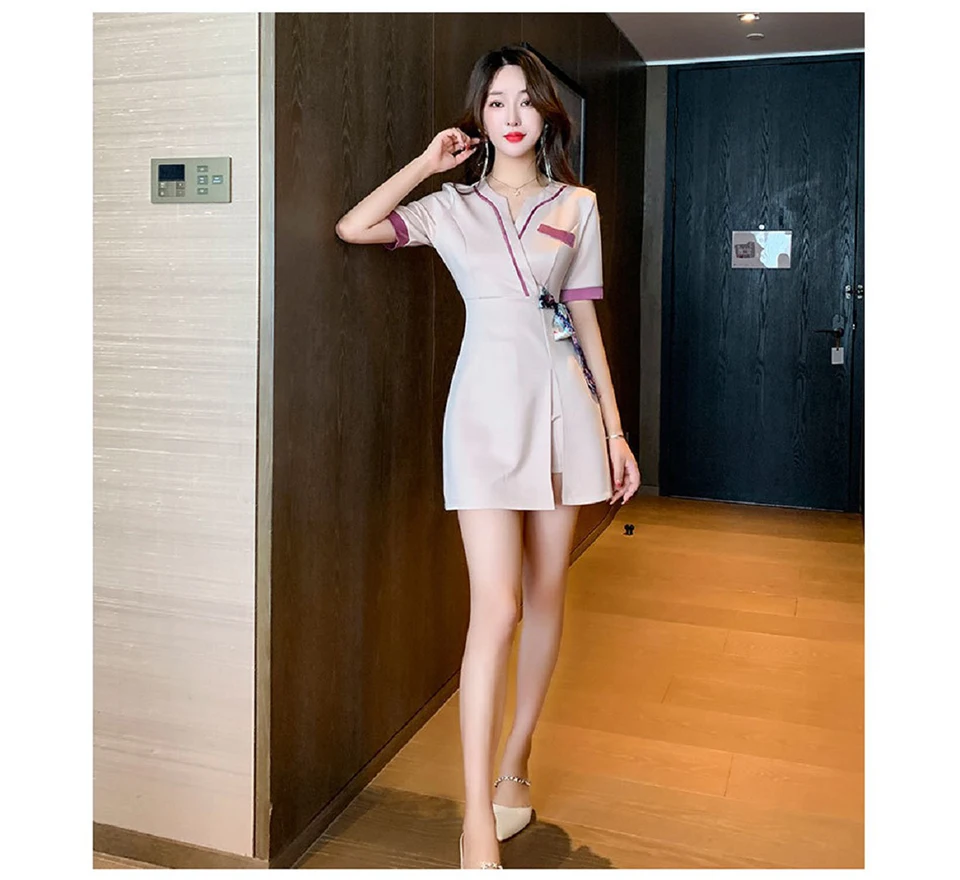 Grey Foot Bath Overalls Sauna Massage Salon Spa Work Clothes Manicurists Pedicure Technician Uniforms for a Beautician Skirt Set