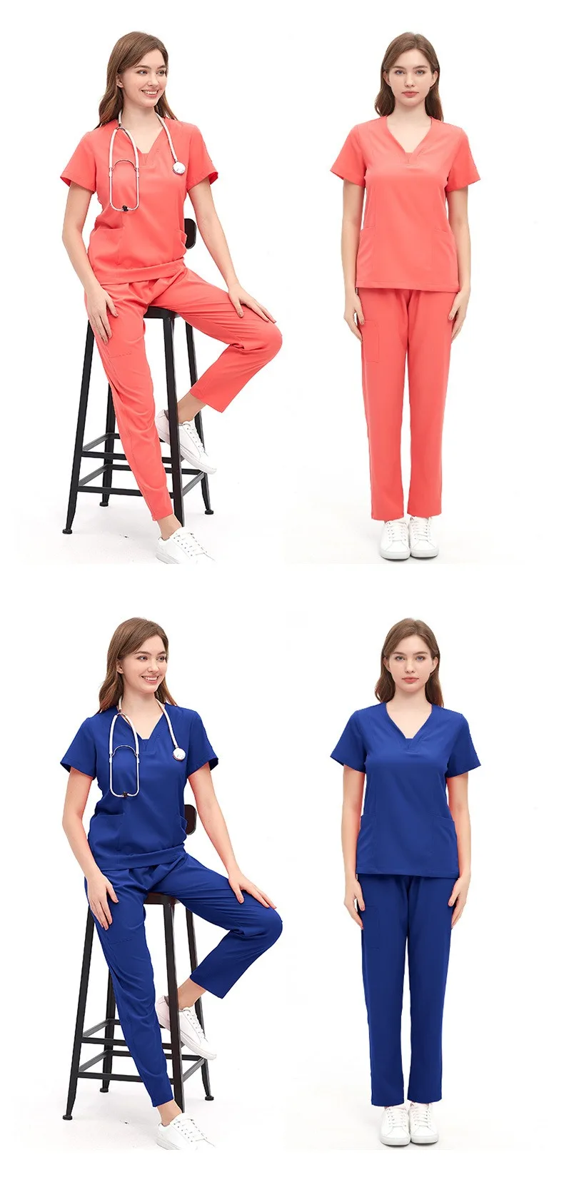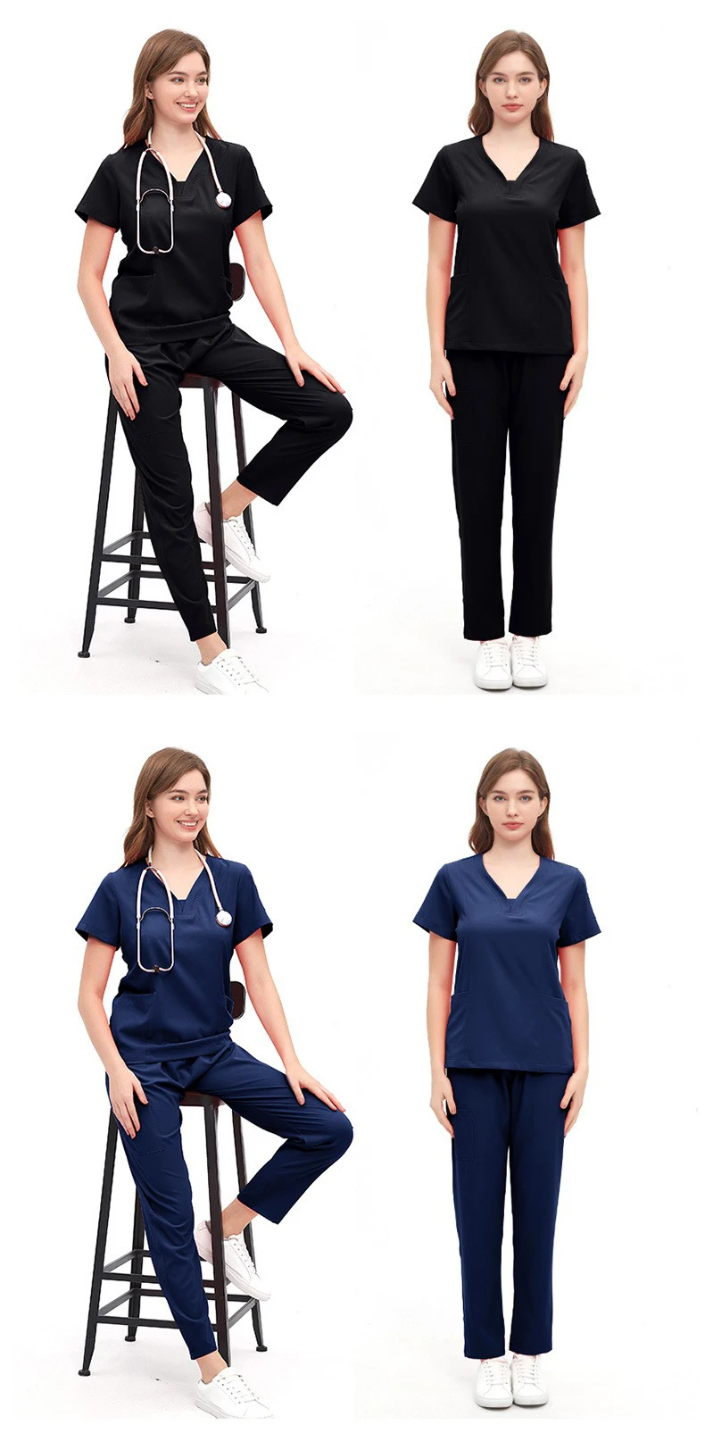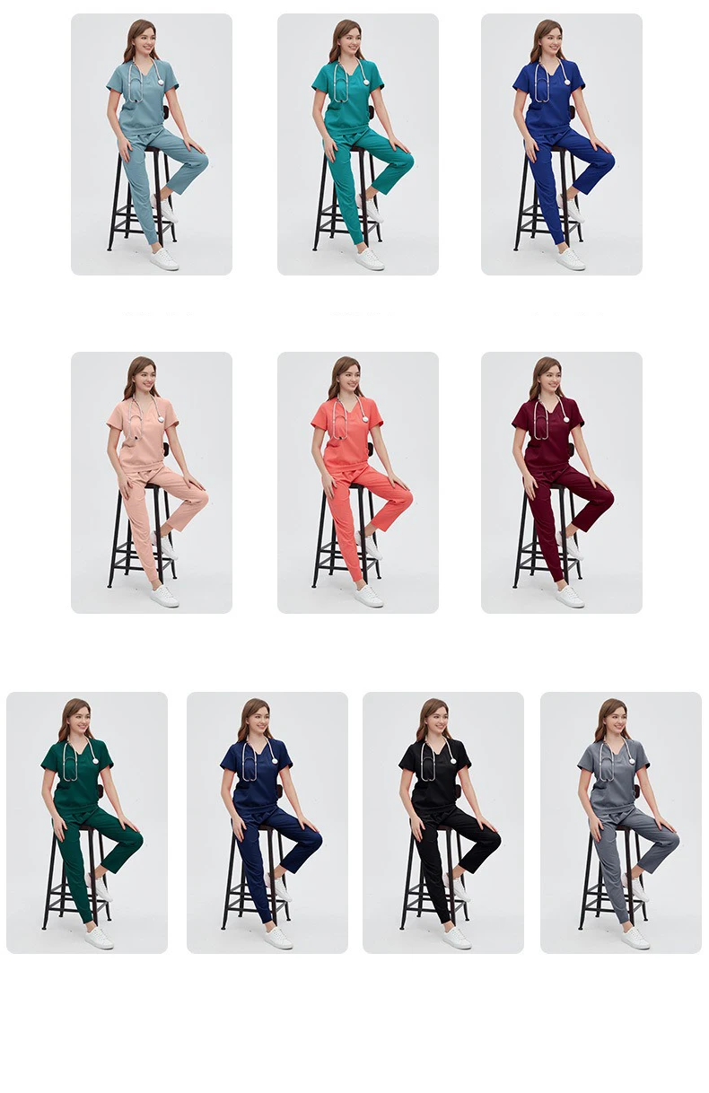 Jewel Collar Medical Scrub Uniform Solid Color Dental Clinic Nursing Sets Stretch Heathy Care Center Woking Clothes LMW008-01