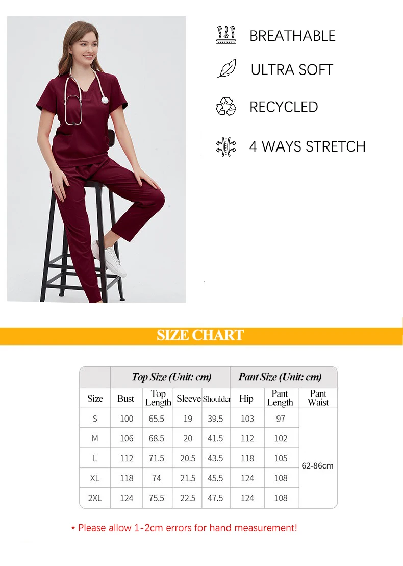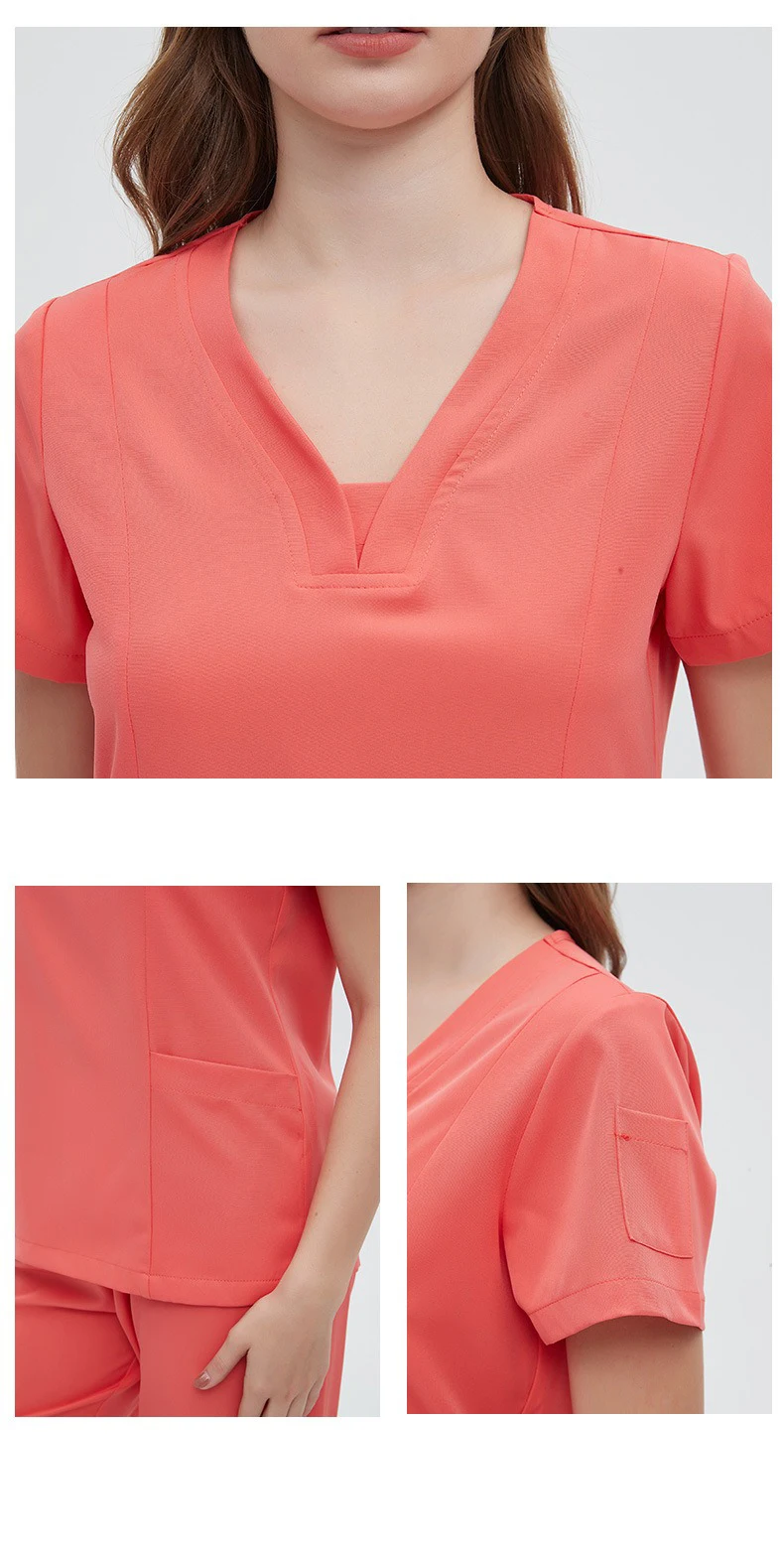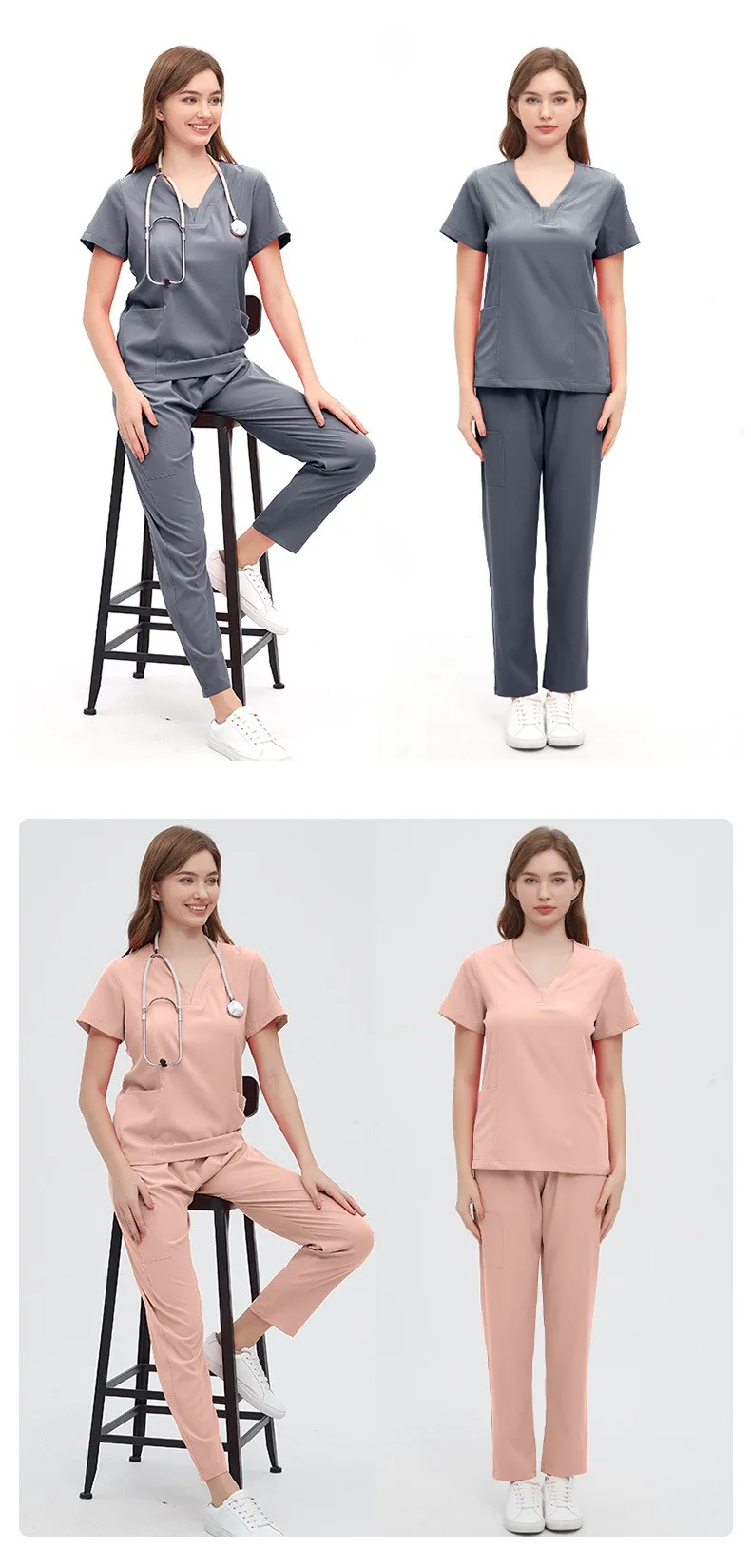 Jewel Collar Medical Scrub Uniform Solid Color Dental Clinic Nursing Sets Stretch Heathy Care Center Woking Clothes LMW008-01
