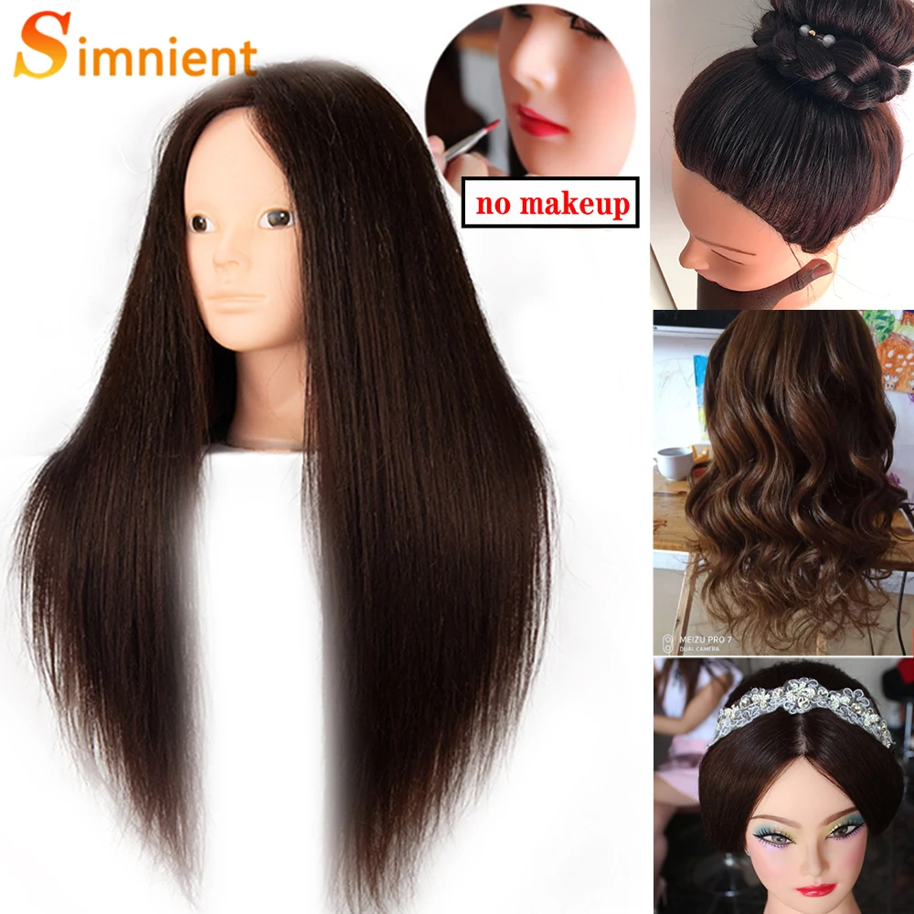 Mannequin Head With 26” 85%Real Human Hair Styling Training Head Manikin Cosmetology Doll Head For Straightening Curling Braid