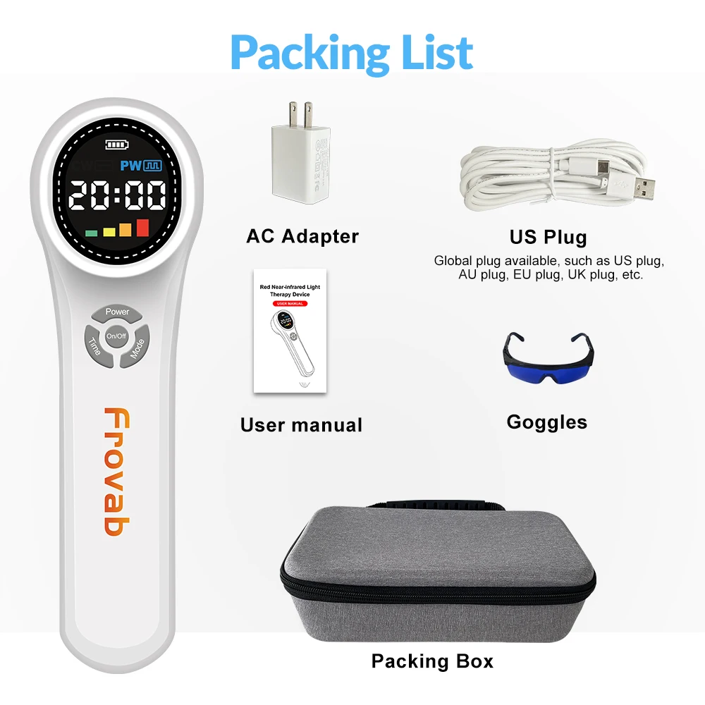 【Service&1 Year Warranty】Packaging contains 1* Cold laser therapy device, 1* Power adapter plug, 1*Packing box,1* User manual,1* Protective glasses. Photo therapy product is a thoughtful gift to remember for women & men, for any occasion. Add to the wellness routine of your cared ones or pets, letting them feel free & relieved. Please read the manual before use, If you encounter any problems, feel free to contact us, we will reply and help solve it within 24 hours.