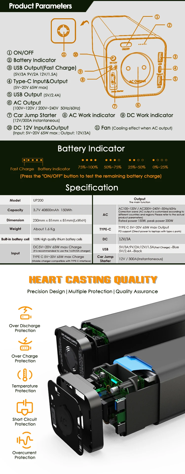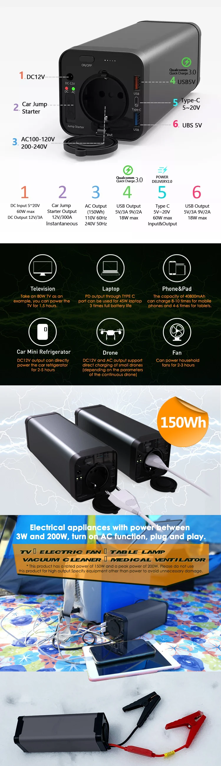 Portable Outdoor Mini UPS 40800mah Power Supply AC110V 220V Output PD Power Bank for Laptop Portable Power Station