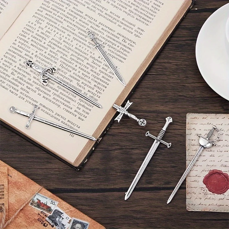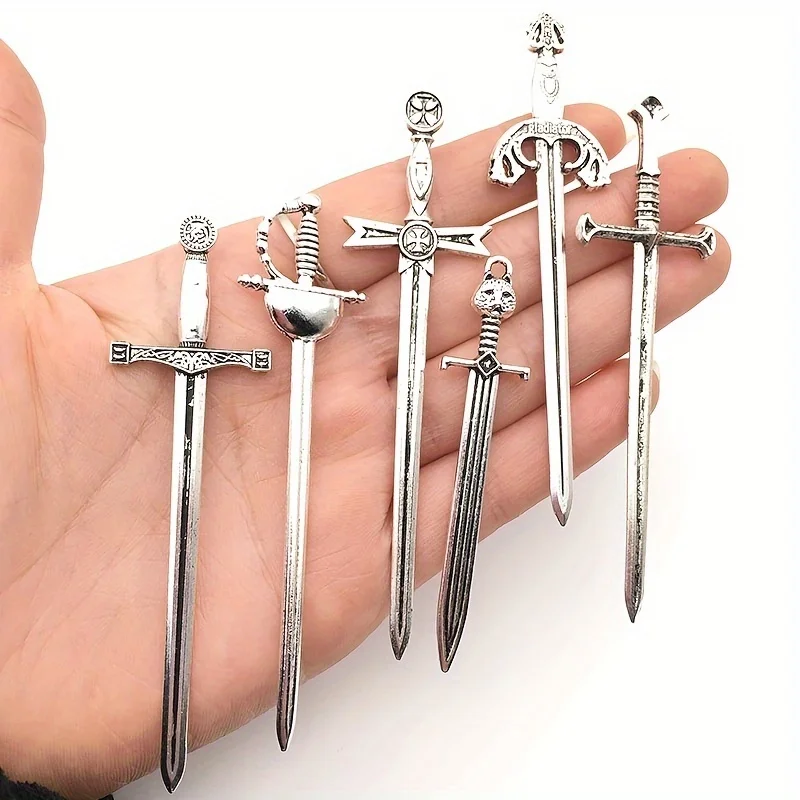 MOHAMM 6pcs/set Antique Swords Knife Bookmark Set Retro Charms Metal Book Marks Reading Book Clips Markers Craft Supplies