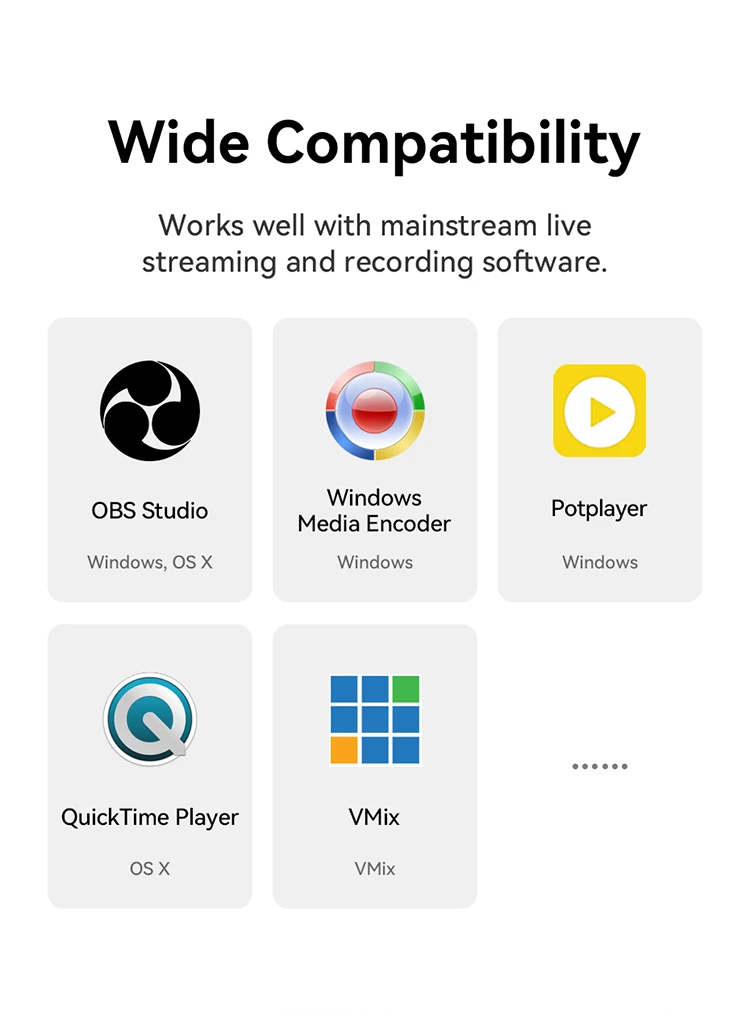 Ready to use out-of-the-box, no tedious setting.E-commerce Livestreaming Capture high-quality video for streaming