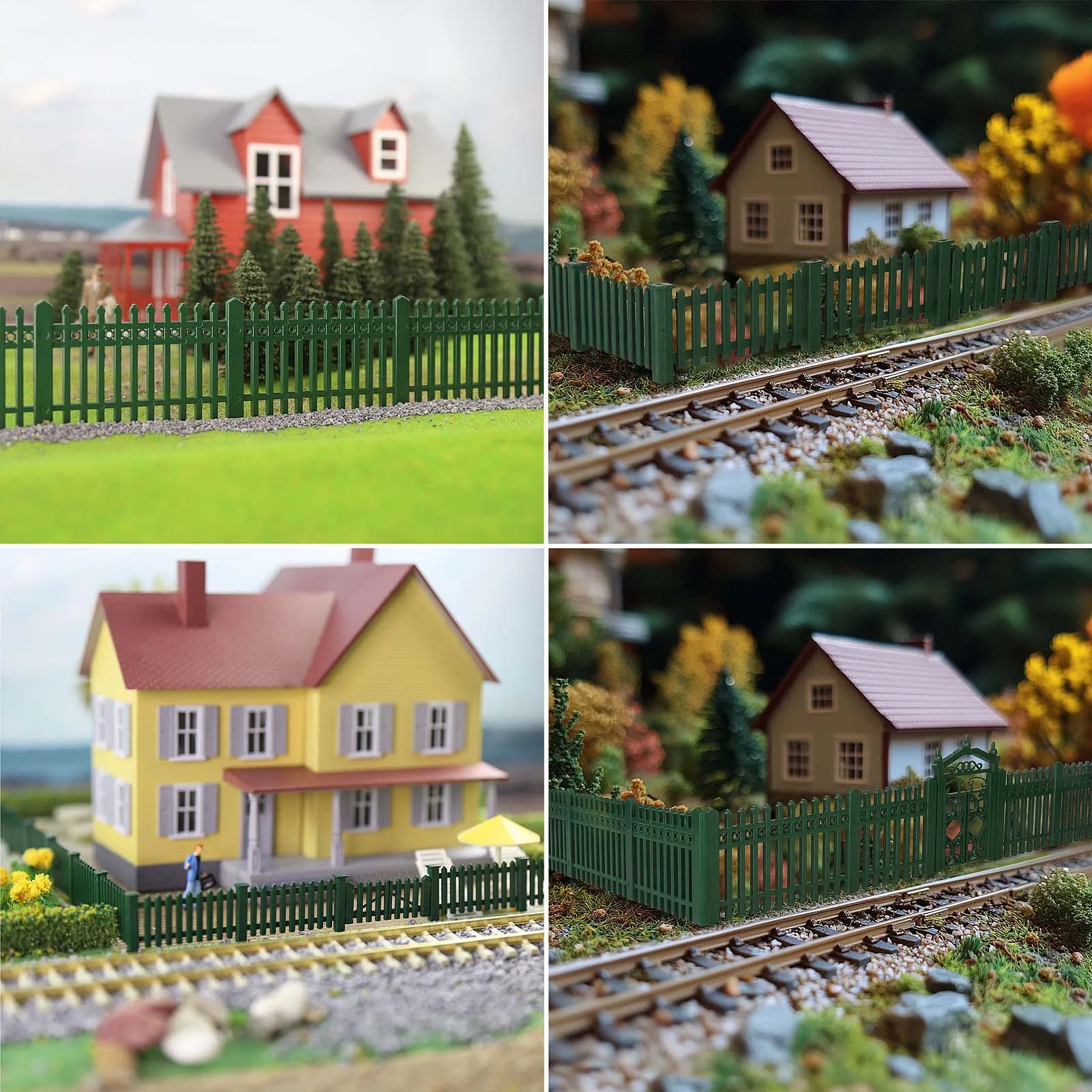 Eevemodel O HO Scale Green Model Fences with Gates Building Wall for Model Trains Diorama Scene