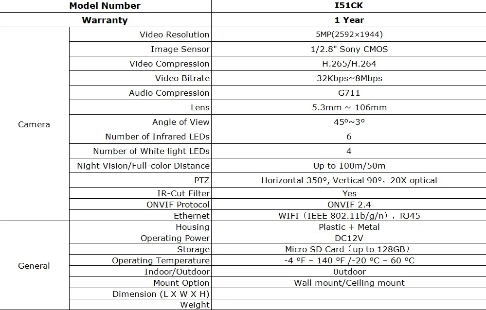 *Pan and Tilt (level: 350° & vertical: 90 °)