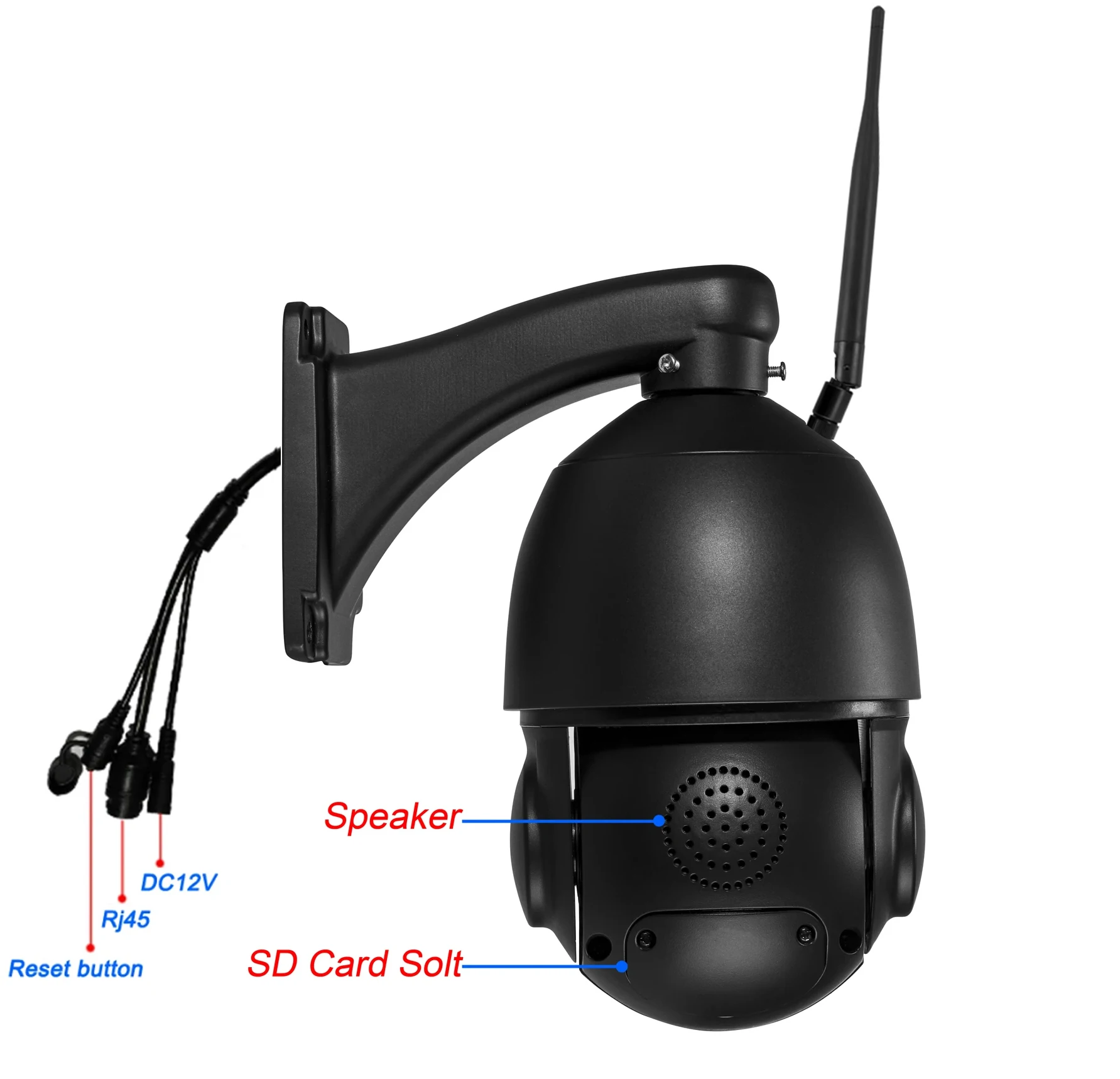 The camera is equipped with a 5dbi external antenna,Camera support wifi and lan(Rj45) connection method.