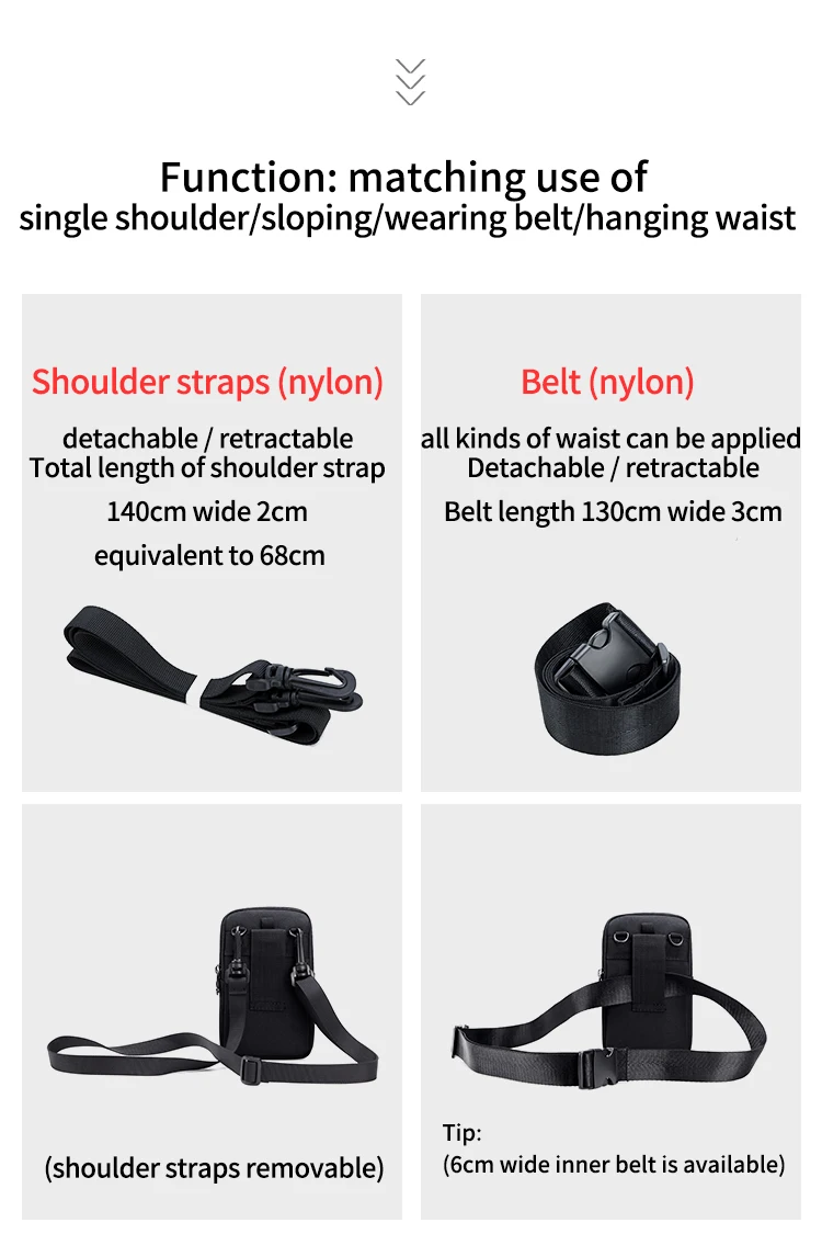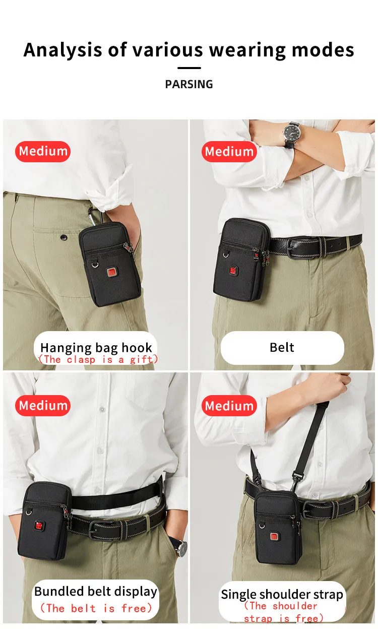 JANGEAR Gaterproof Oxford Cloth Mobile Phone Waist bag Key Coin Wallet Men's Mobile Phone Bag Multi Function Retro Messenger Bag