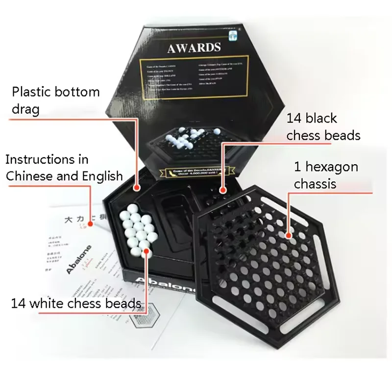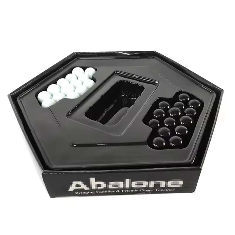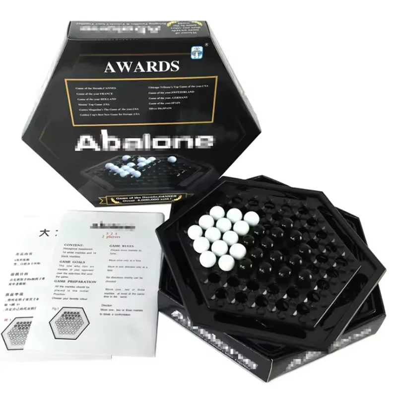 "Don't be fooled by Abalone's simplicity. The game consists of just a board, 14 white marbles and 14 red marbles. But once play begins, you'll see it's a sophisticated game of strategy. Abalone is hugely popular in Europe and is now catching on feverishly in the USA. It takes only a few minutes to learn but a lifetime to master.We offer party games that are perfect to play with the whole family, as well as several titles that are ideal for a rowdy evening with your adult friends! So, spend time with us and you can have a great time with the family, get to know the neighbors or even learn how to read!"