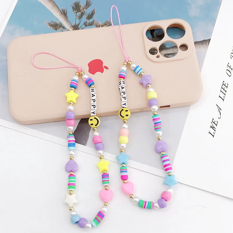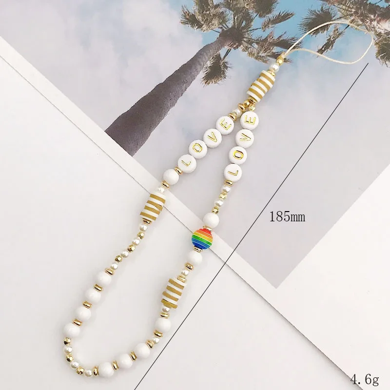 Bohemian Butterfly Soft Pottery Phone Chain Lanyard DIY Letters LOVE Pearl Beaded Phone Case Rope Charm Jewelry Accessories 2022