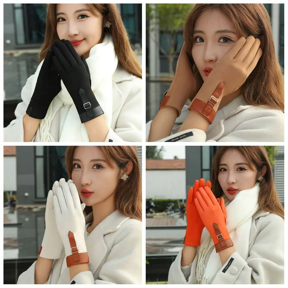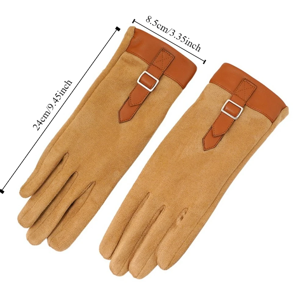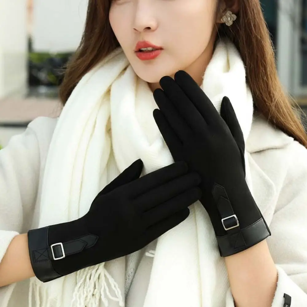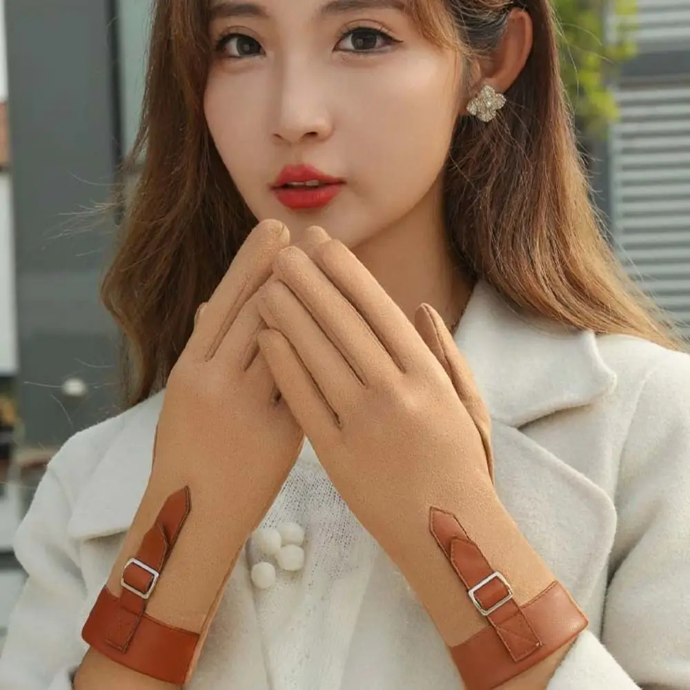 Fashion Thickened Women Suede Velvet Gloves Full Finger Plush Touch Screen Gloves Windproof Keep Warm Winter Mittens Outdooor