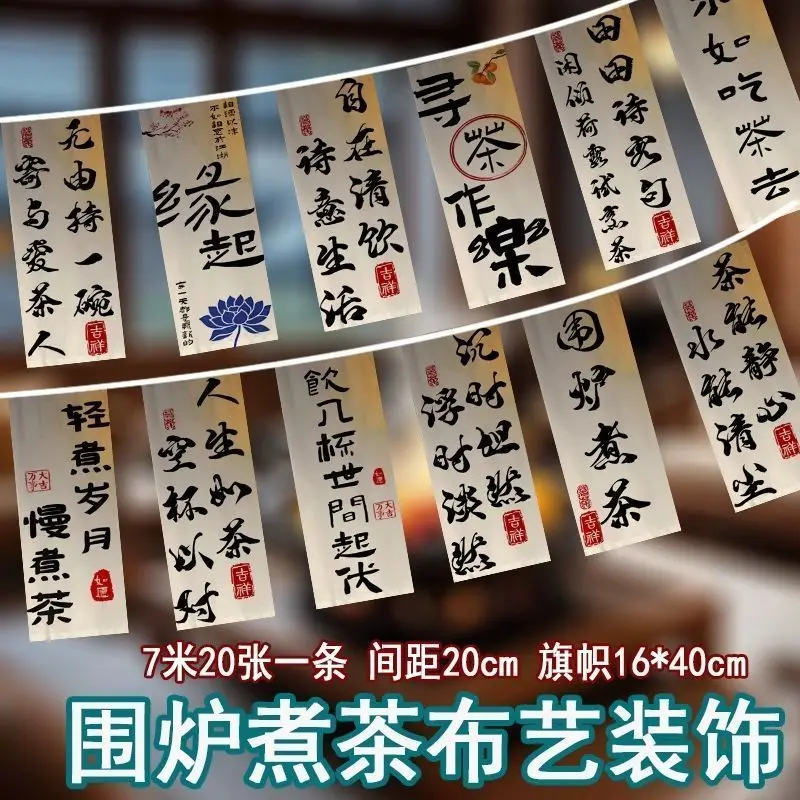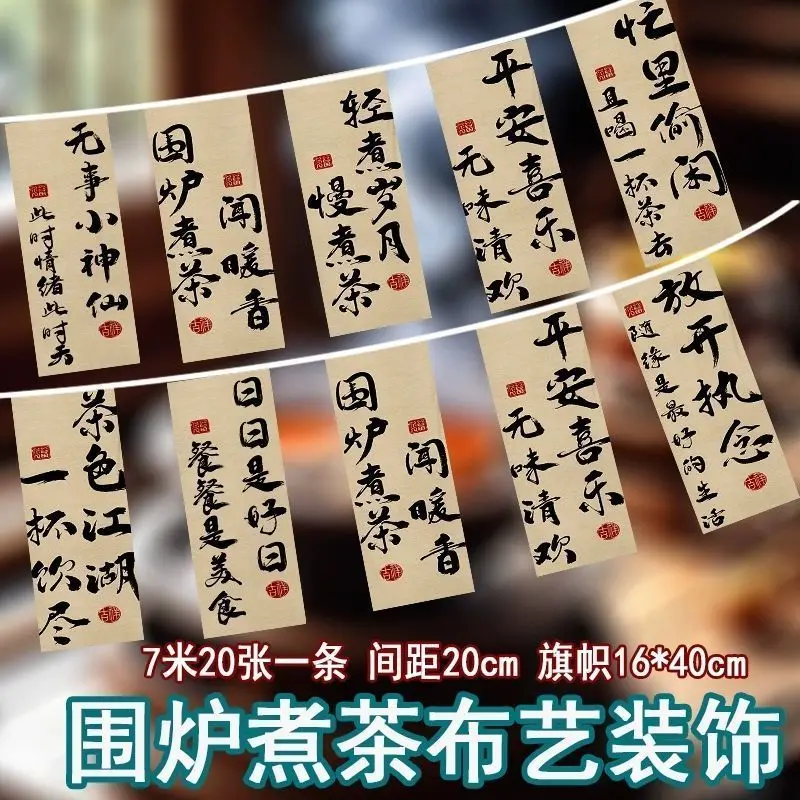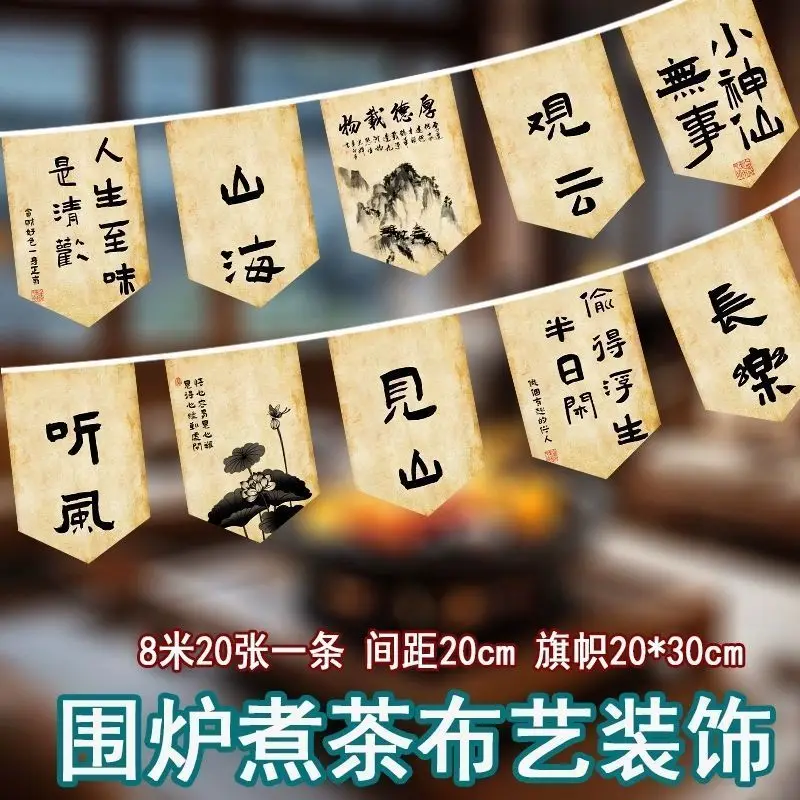 Fireplace Tea Cooking String Flags Decoration Outdoor Room High-Grade Ceiling Decoration Atmosphere Background Fabric Wall Camp