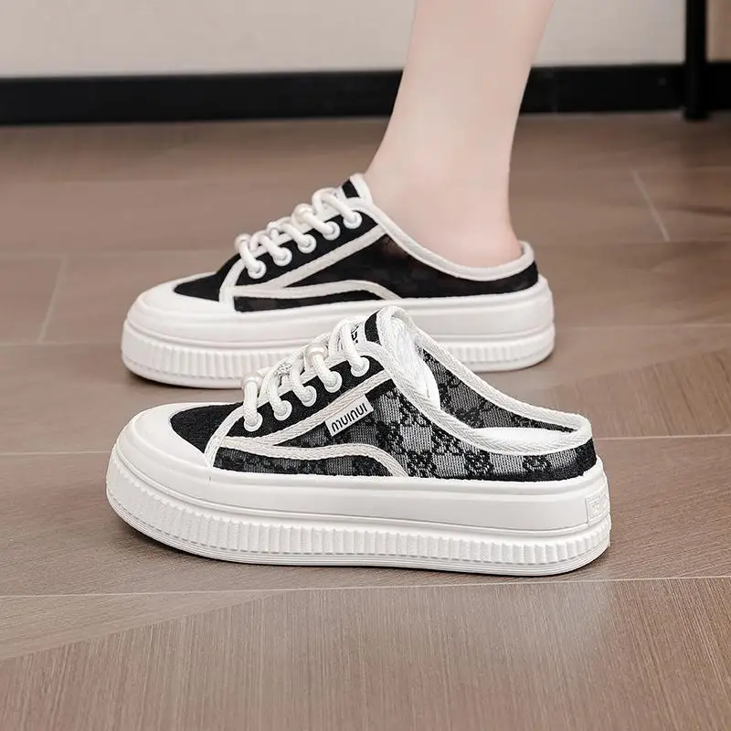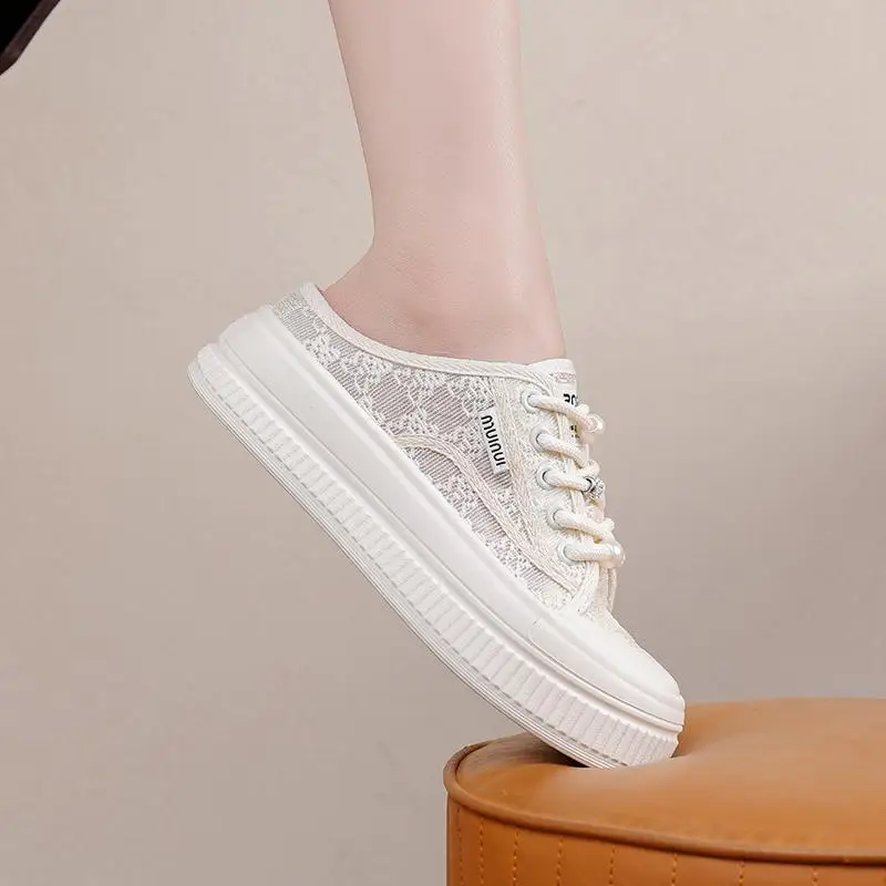 Women Slippers Outdooor Mesh Breathable Lace Up Thick Sole Sandals Wear Resistant Non-slip Fashion Causal Versatile 2024