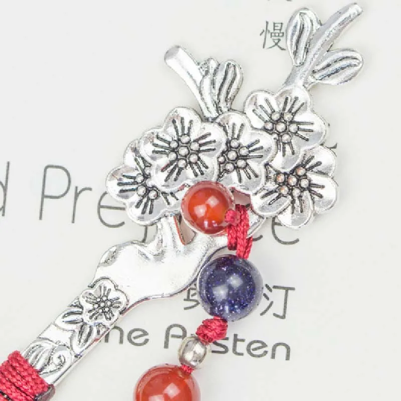 1PC Chinese Style Retro Metal Bookmark with Tassel Creative Plum Bossom Book Mark Students Stationery School Office Supply Gifts