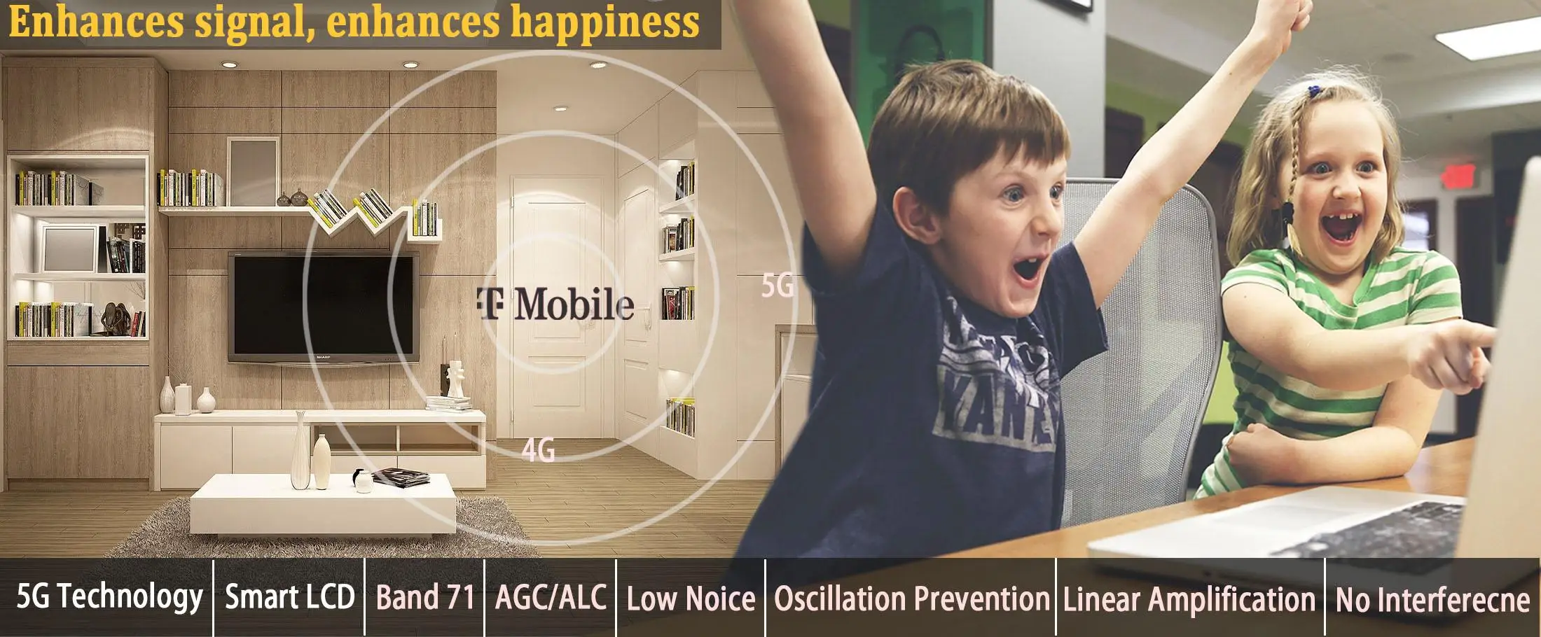 With the help of the booster, you can improve your T-Mobile/Sprint/U.S.Cellular/Rogers/Telus 4G 5G internet data experience.