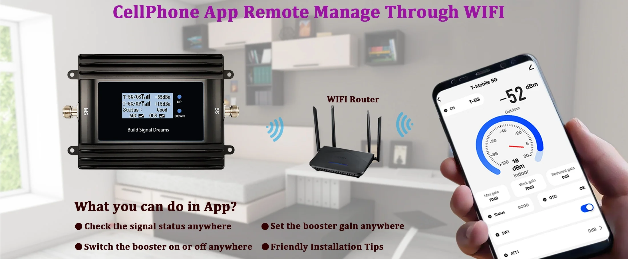 6, Make sure the outdoor signal strong enough to cover the area you need,stronger outdoor signal wider coverage.