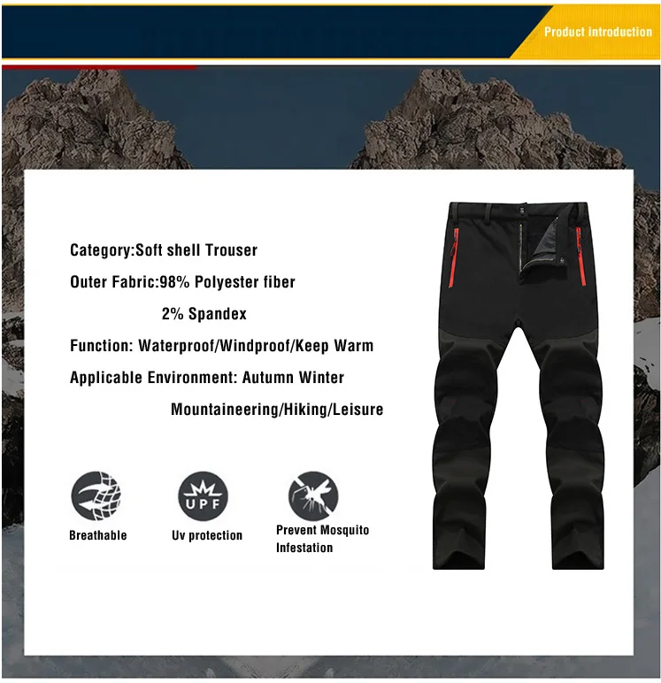 TRVLWEGO Hunting Climbing Camping Hiking Trekking Pants Softshell Autumn Winter Waterproof Warmth Radiation Protection Men