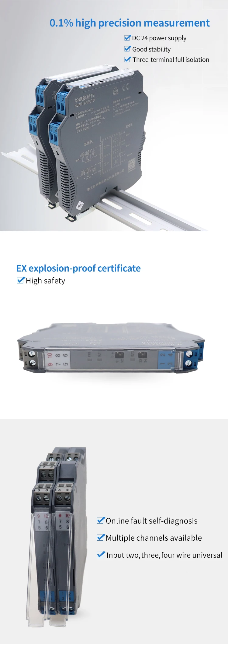 It can be used together with modular instrumentation and DCS,PLC and other systems,to offer signal isolation,signal conversion,signal distribution,signal processing and other functions to field instrument,thereby enhancing the immunity of automatic control system in the industrial production process,and ensuring system stability and reliability.