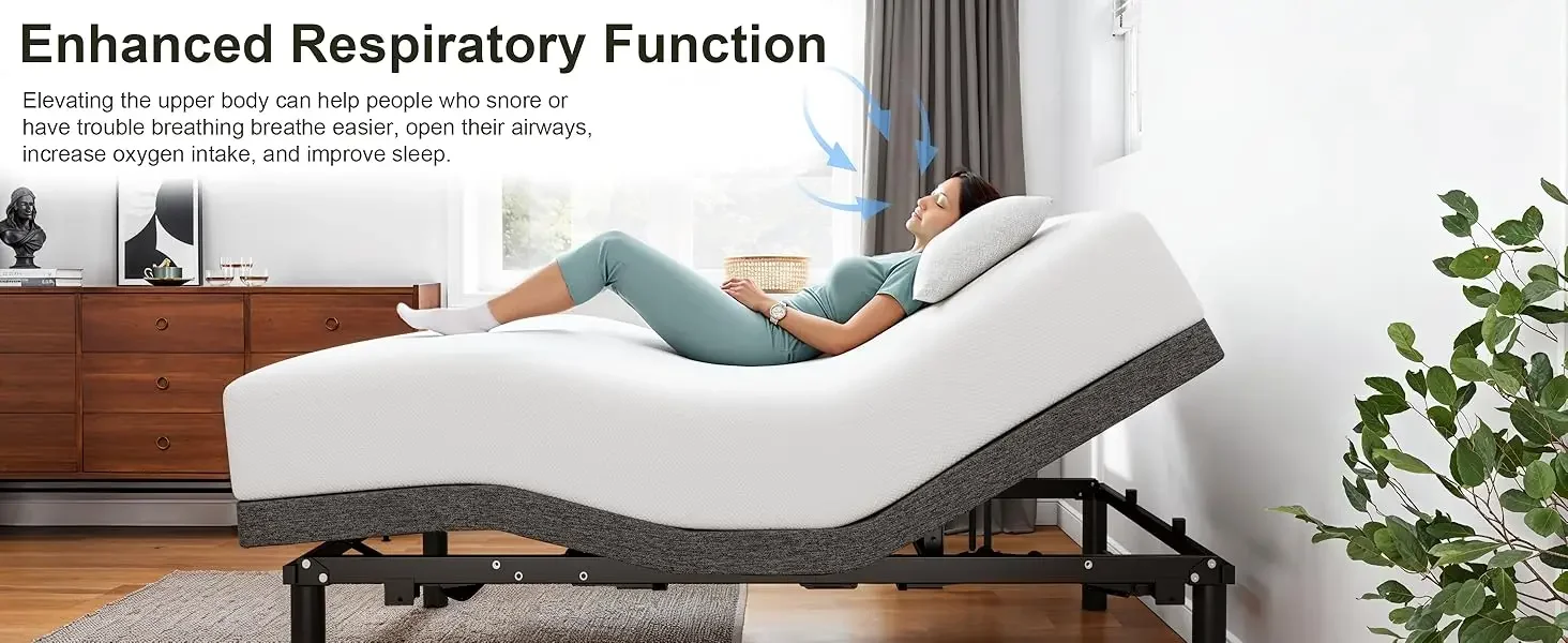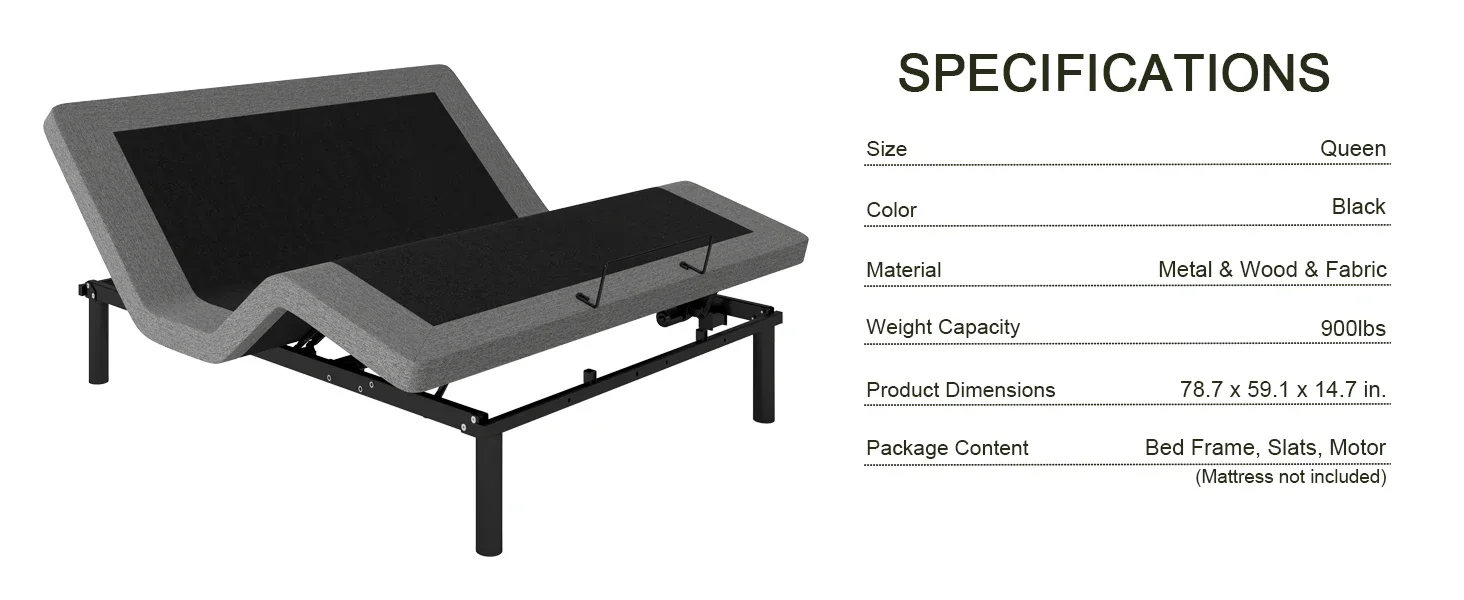 Queen Size Adjustable Bed Base, Wireless Remote Control, Whisper Quiet Durable Motor, Independent Head and Foot Inclin