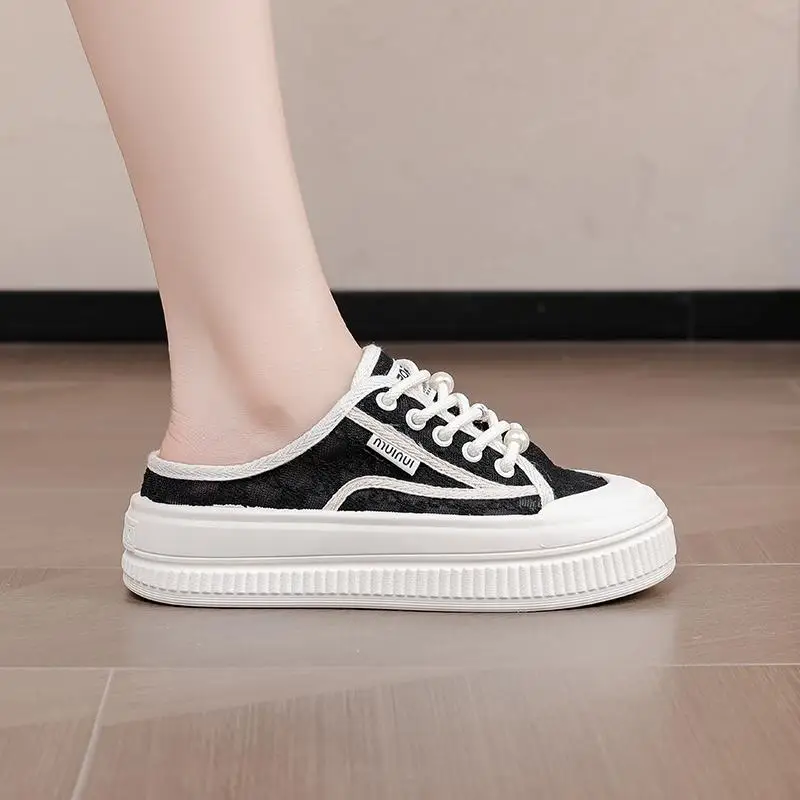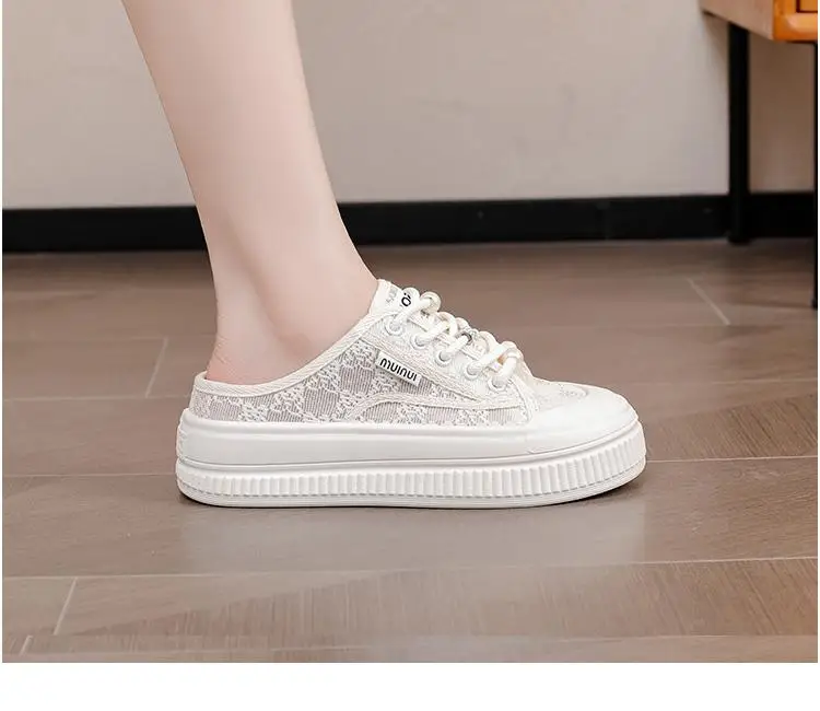 Women Slippers Outdooor Mesh Breathable Lace Up Thick Sole Sandals Wear Resistant Non-slip Fashion Causal Versatile 2024