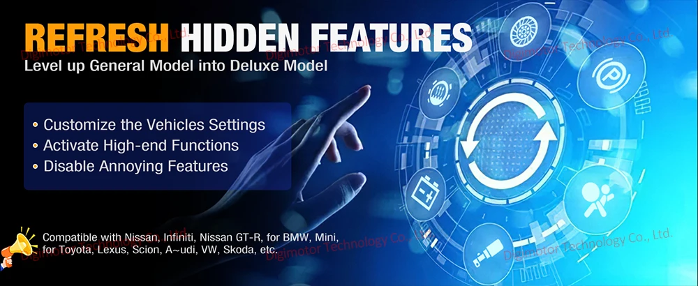 ● Refresh Hidden Features: Activate the hidden features or disable the annoying features; compatible with BMW, VW, Audi, Skoda, etc.