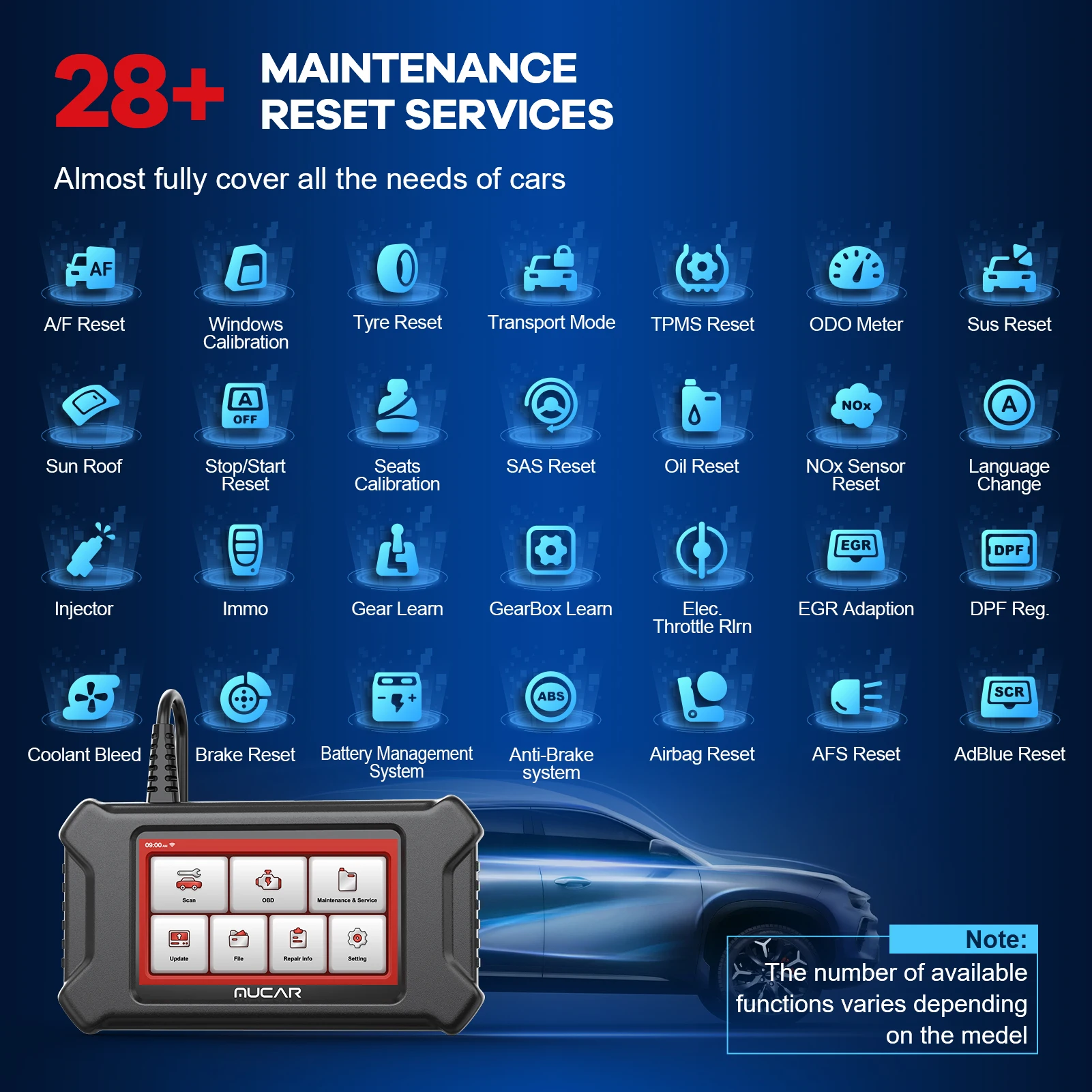 4. MUCAR CS90 supports 28 reset services, Lifetime Free for All Cars