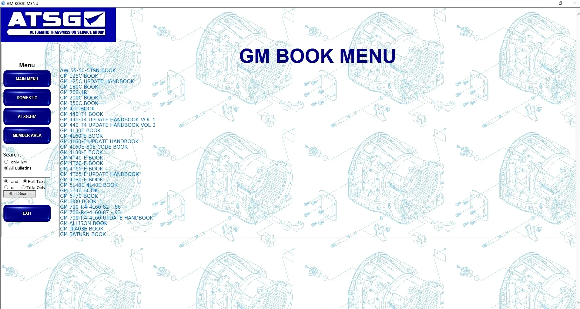 ATSG is the abbreviation of the American Automatic Transmission Maintenance Group. This is the automatic transmission maintenance information published by it. It contains the automatic transmission of most models in the world, including the maintenance, disassembly, technical bulletin and other information of the automatic transmission.