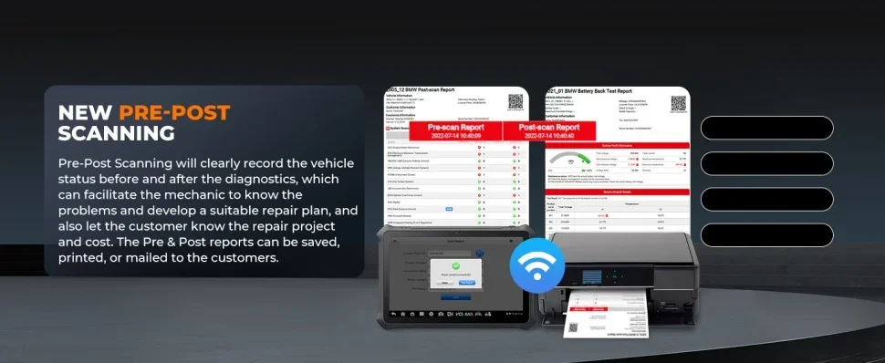All the diagnostic reports can be stored in the Cloud Server and save your tablet storage space. Once you need to print or share these reports (by QR code, sending a message, and sending mails.), just download them from the cloud server and connect the PC and printer for paper archive or analysis.