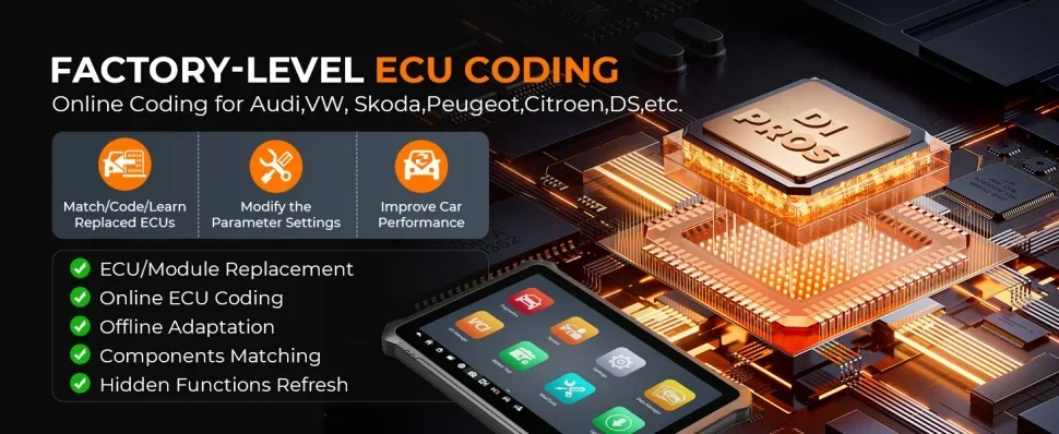 [ECU Online Coding & ECU Offline Adaption] OTOFIX Automotive Scanner D1 ProS supports ECU Coding to recode/ reprogram new ECUs, modify corresponding parameters, match, learn, code ECU modules, update ECU coordination to disable annoying functions, refresh hidden advanced functions. Such as deactivating the Start/Stop function, door/ windows/ Mirrors setting, etc. Thanks to the CAN FD/Do IP protocol, it allows to code BMW F&E chassis and Porsche, offline adaptation.