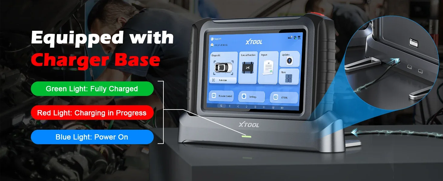 XTOOL InPlus IP919 Pro Automotivo Car Diagnostic Tool adopts new independent charging base design, which breathing display when charging.
