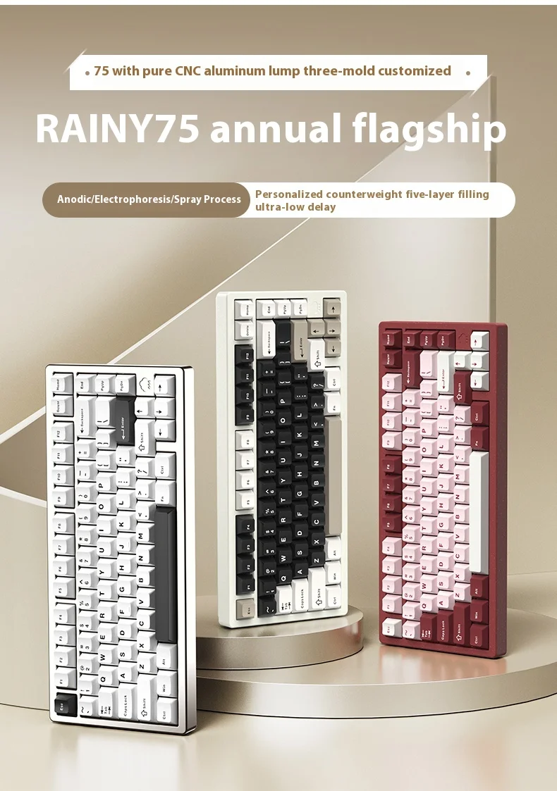 WOB Rainy 75 Bluetooth Wireless Mechanical Keyboard Aluminum Gasket Hot Swap Rgb Keyboards 81 Keys Cnc Backlight Gamer Keyboards