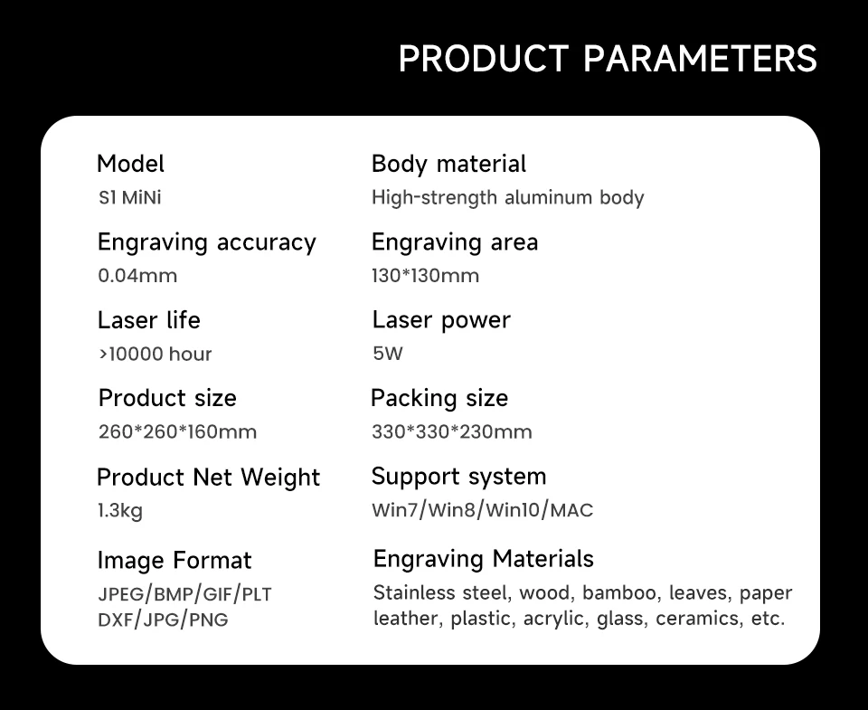 Maximized Space Utilization And Precise Positioning: Despite its mini size, the GLYPHO S1 offers a generous 130*130mm engraving area, maximizing the utilization of space. It allows users to process multiple small metal ornaments simultaneously and engrave small ceramics. Moreover, the laser scale integrated into the frame provides clear reference points along the X and Y axes, enabling precise positioning for complex and detailed projects.