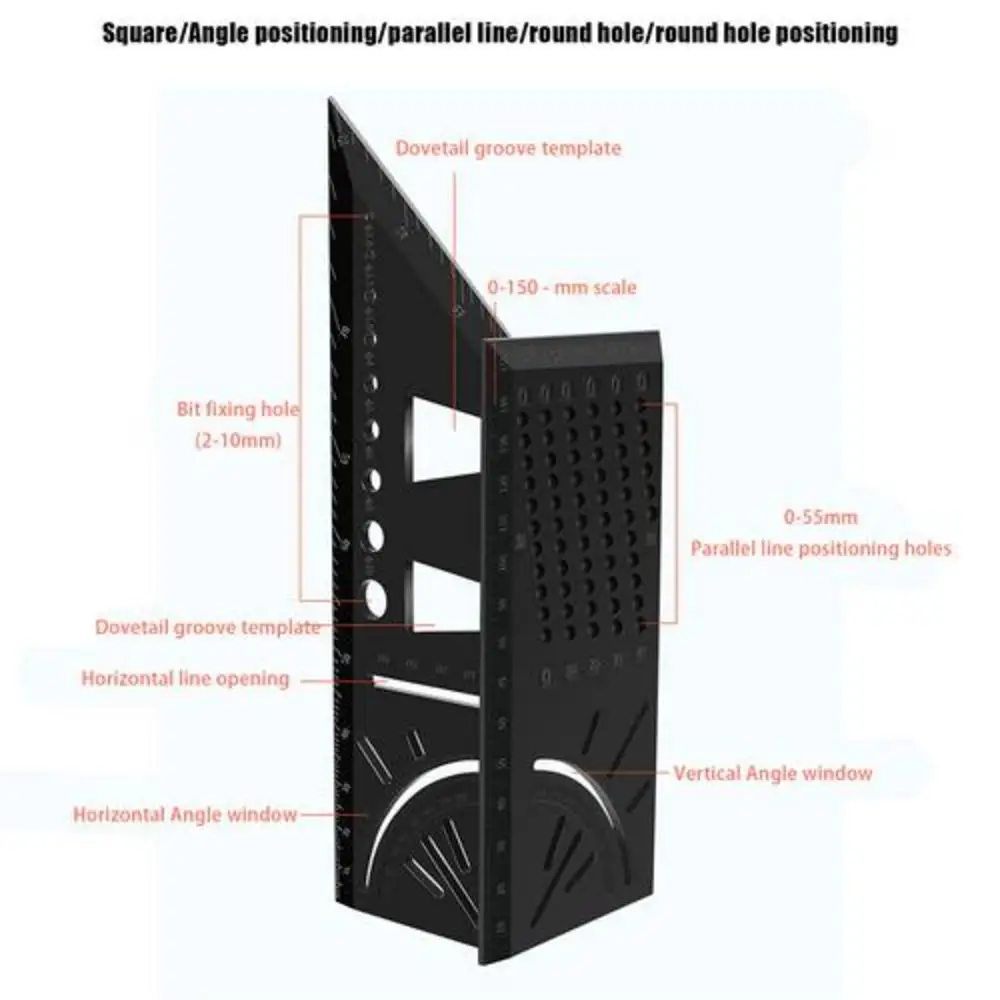 New Woodworking Gauge Ruler 3D Mitre Angle Measuring Square Measure Tool 45 Degree And 90 Degree With Carpenter Pencil