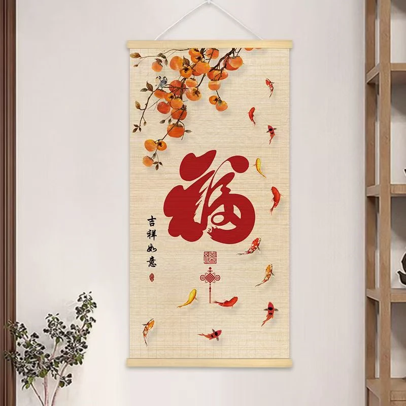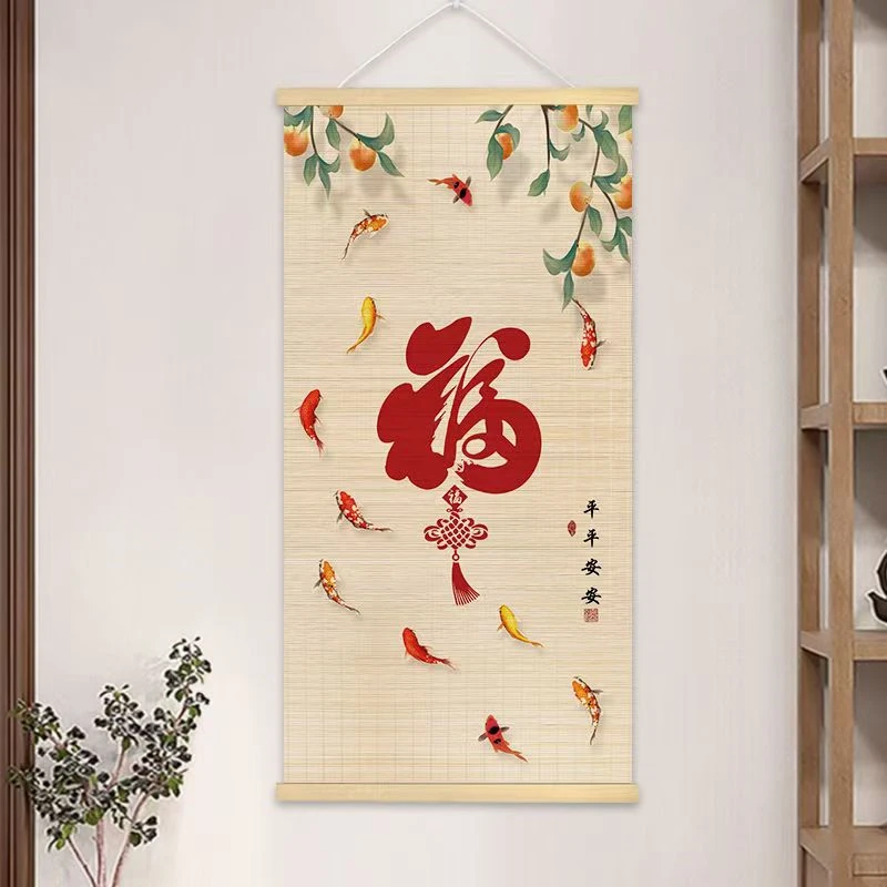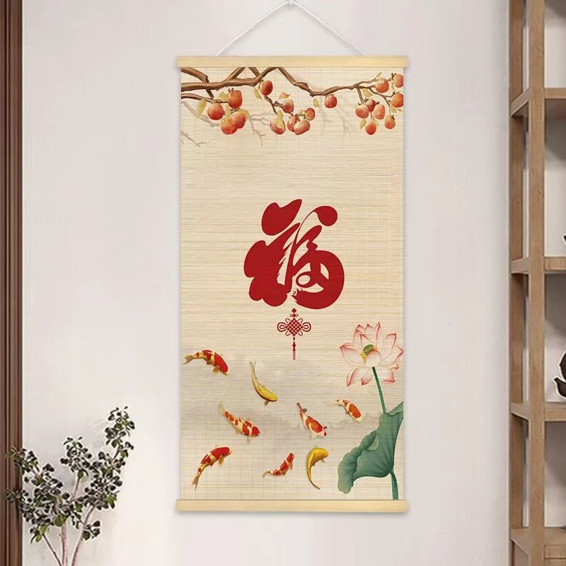 Koi hanging paintings, attracting wealth receiving blessings, living room decorations, home feng shui decoration