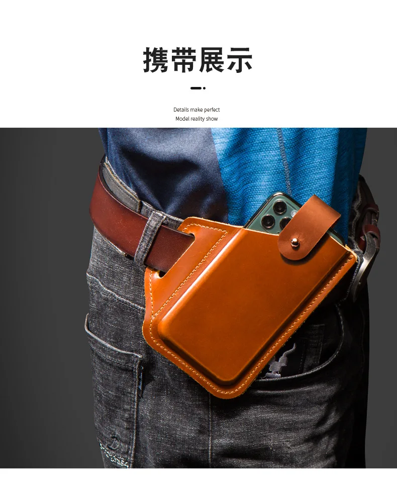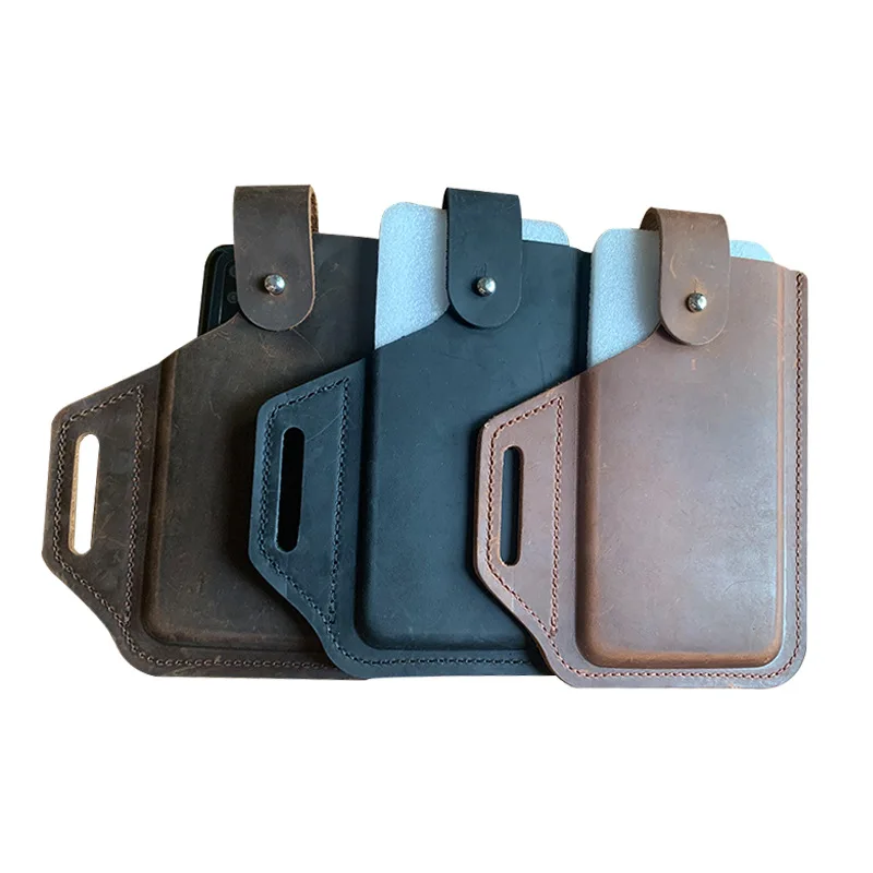 Genuine Leather Phone Pouch Case for 6-7.5 Inch Cellphone Loop Holster Case Belt Waist Bag Phone Wallet Anti-theft
