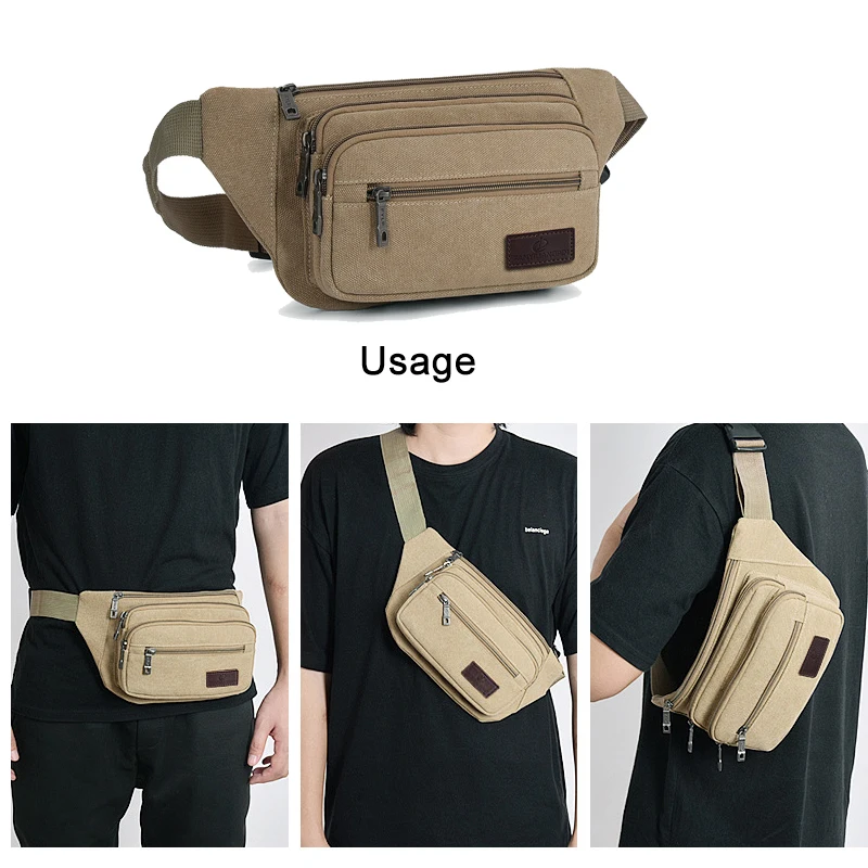 YoReAi Nylon Waterproof Black Army Green Waist Pack Men Women Fanny Pack Bum Bags Hip Money Belt Travel For Mobile Phone Bag