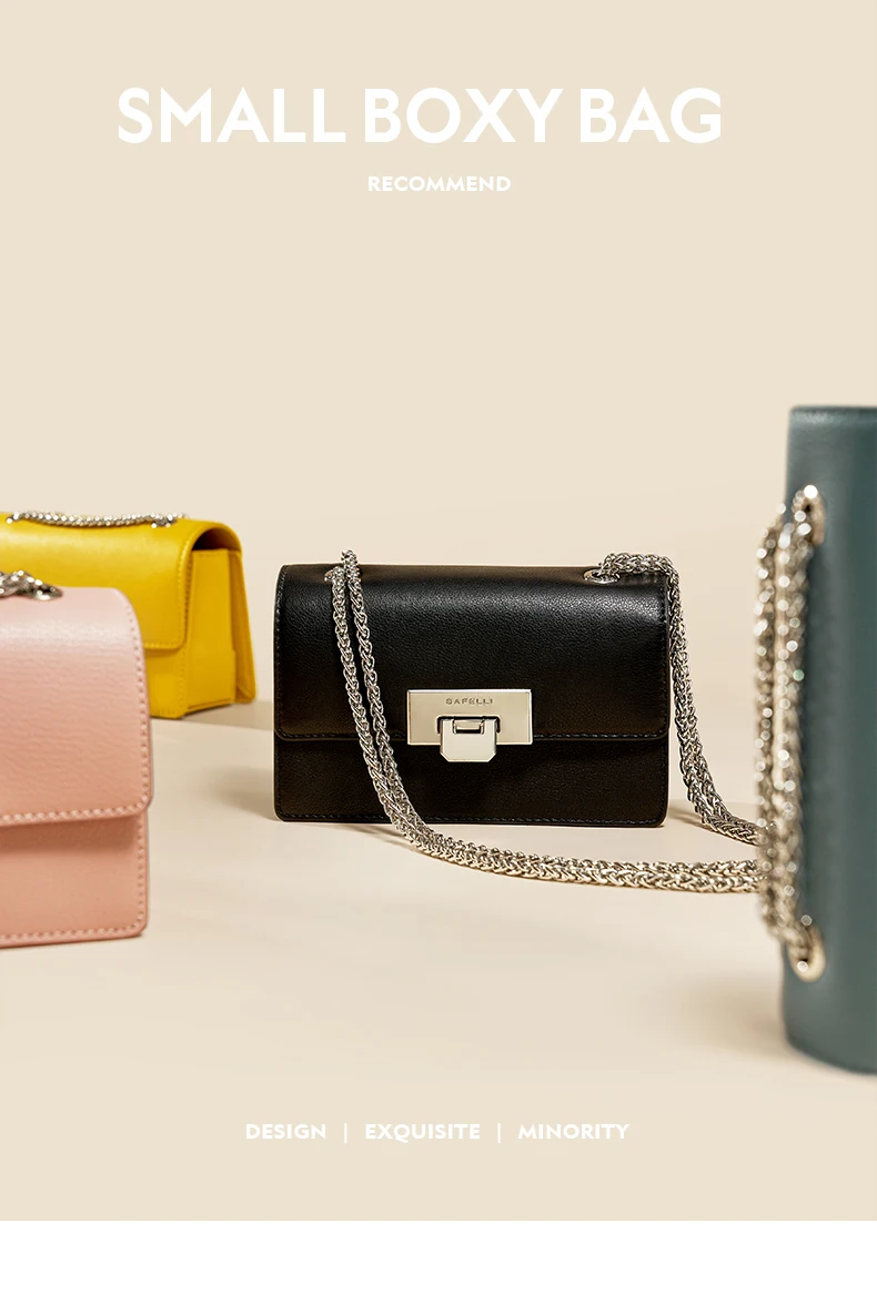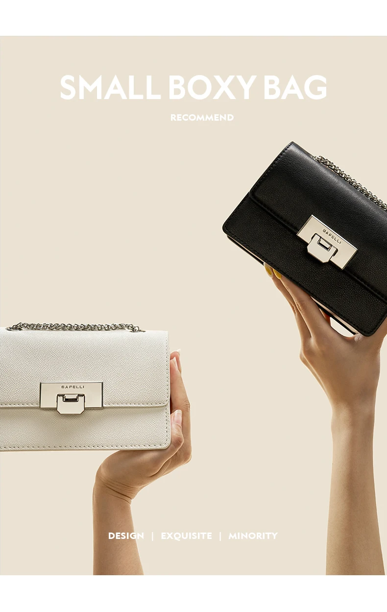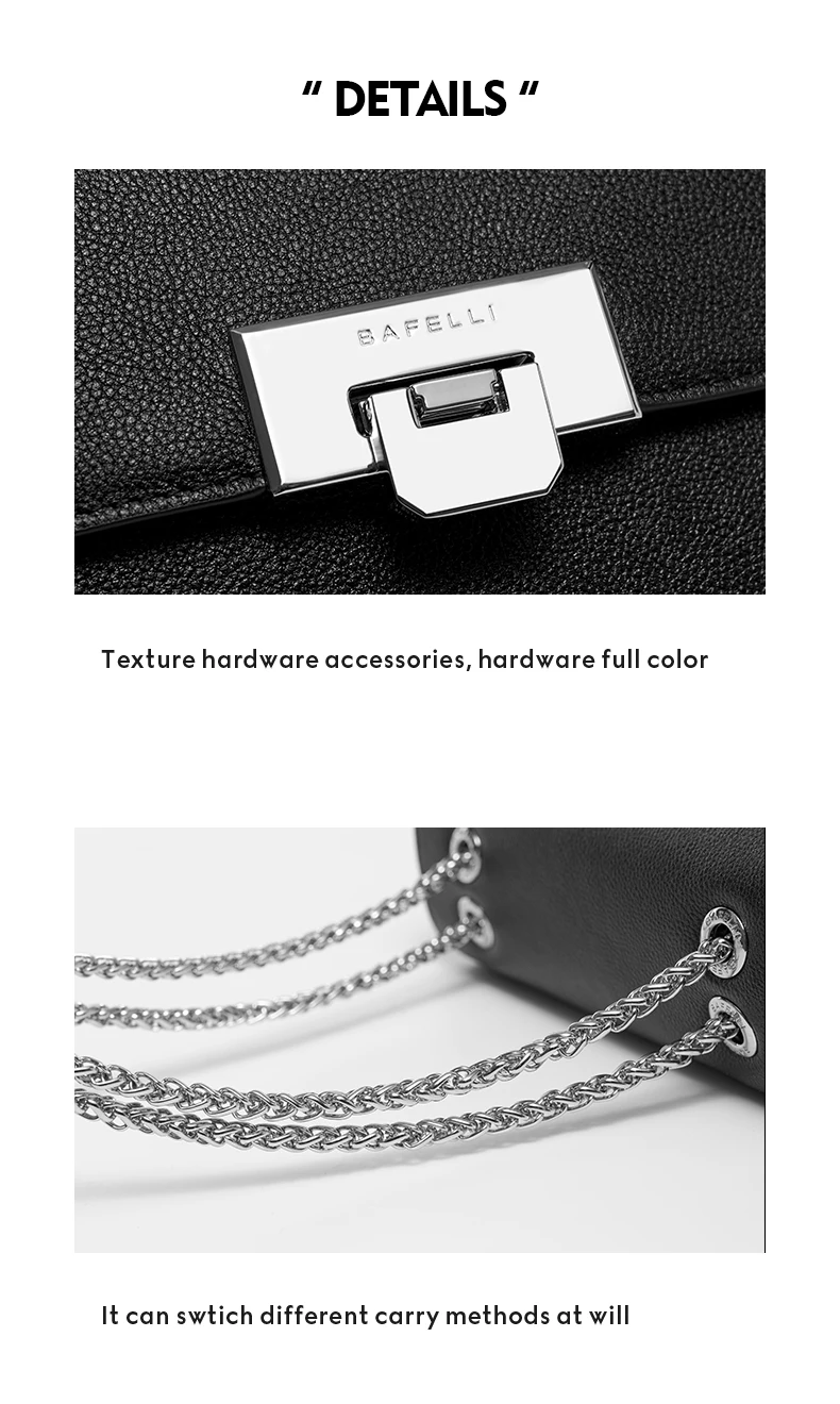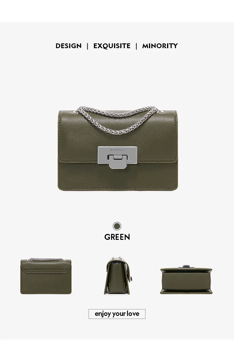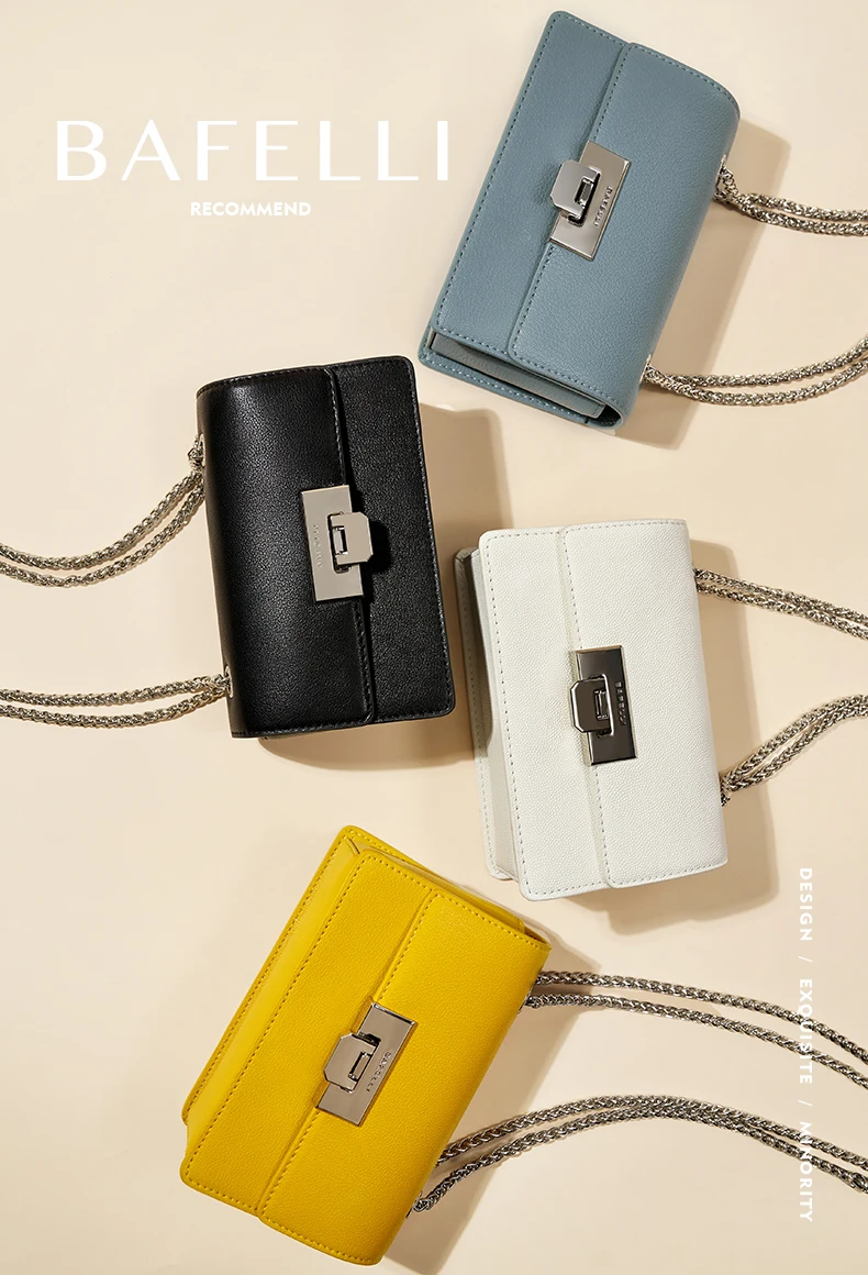 BAFELLI MINI CHAIN BAG WOMEN'S 2024 NEW HANDBAG FASHION SHOULDER CROSSBODY STYLIST COLLOCATION BOX PURSE LUXURY SILVER LEATHER